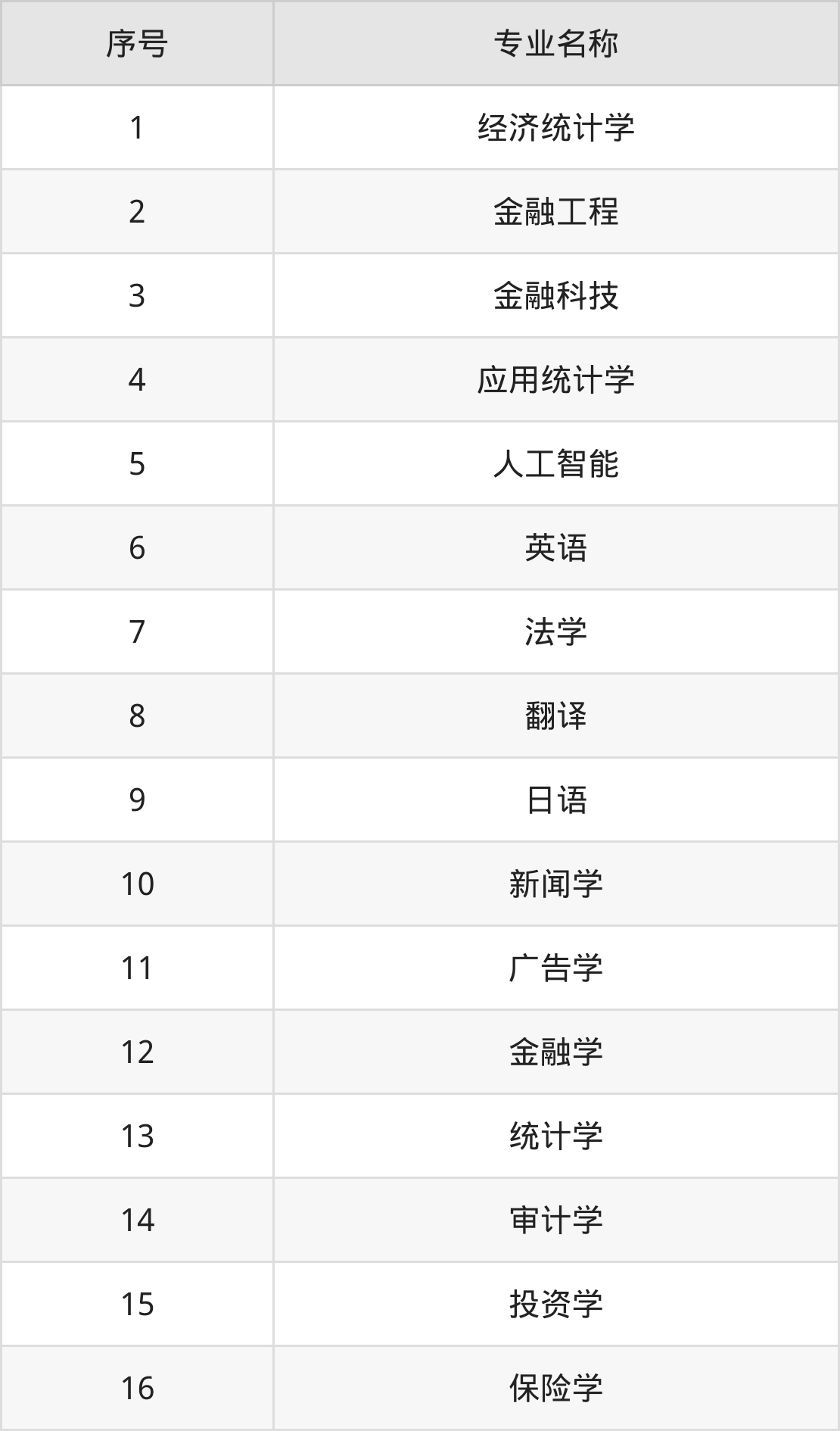 物理类(理科)本科招生专业:经济统计学、金融工程、金融科技、应用统计学、人工智能、英语、法学、日语、翻译、审计学等。