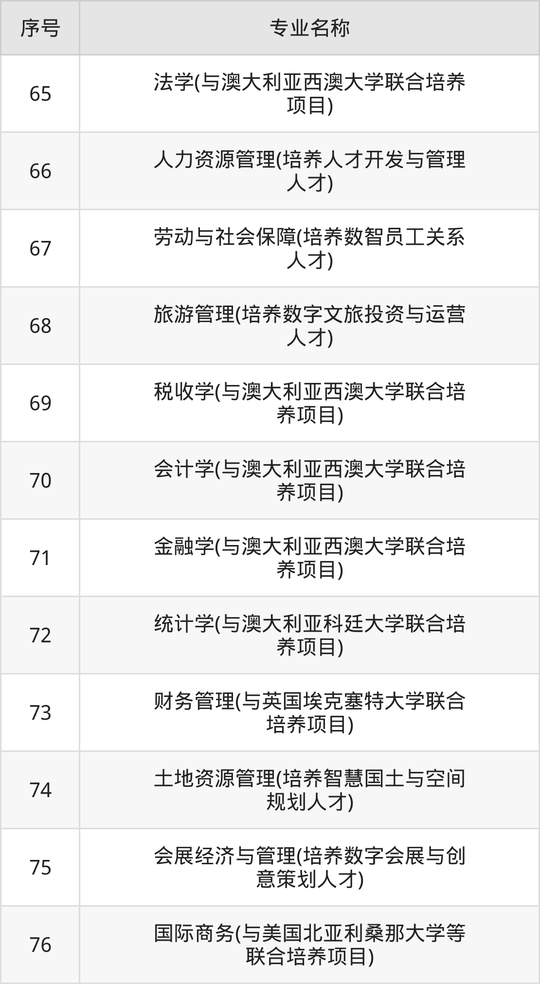 目前,广东财经大学公布了2024年本科招生专业,共76个。