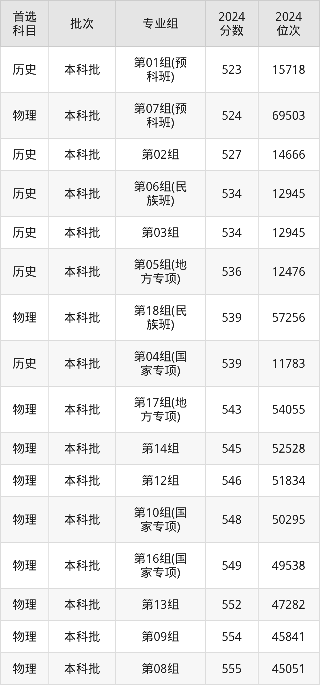 从2024年三峡大学在湖北省内的录取分数线来看,本科批录取分数线都在520分以上,录取分数线最高的是第15组(中外合作),2024年最低分为576分;录取分数线最低的是第01组(预科班),2024年最低分为523分。