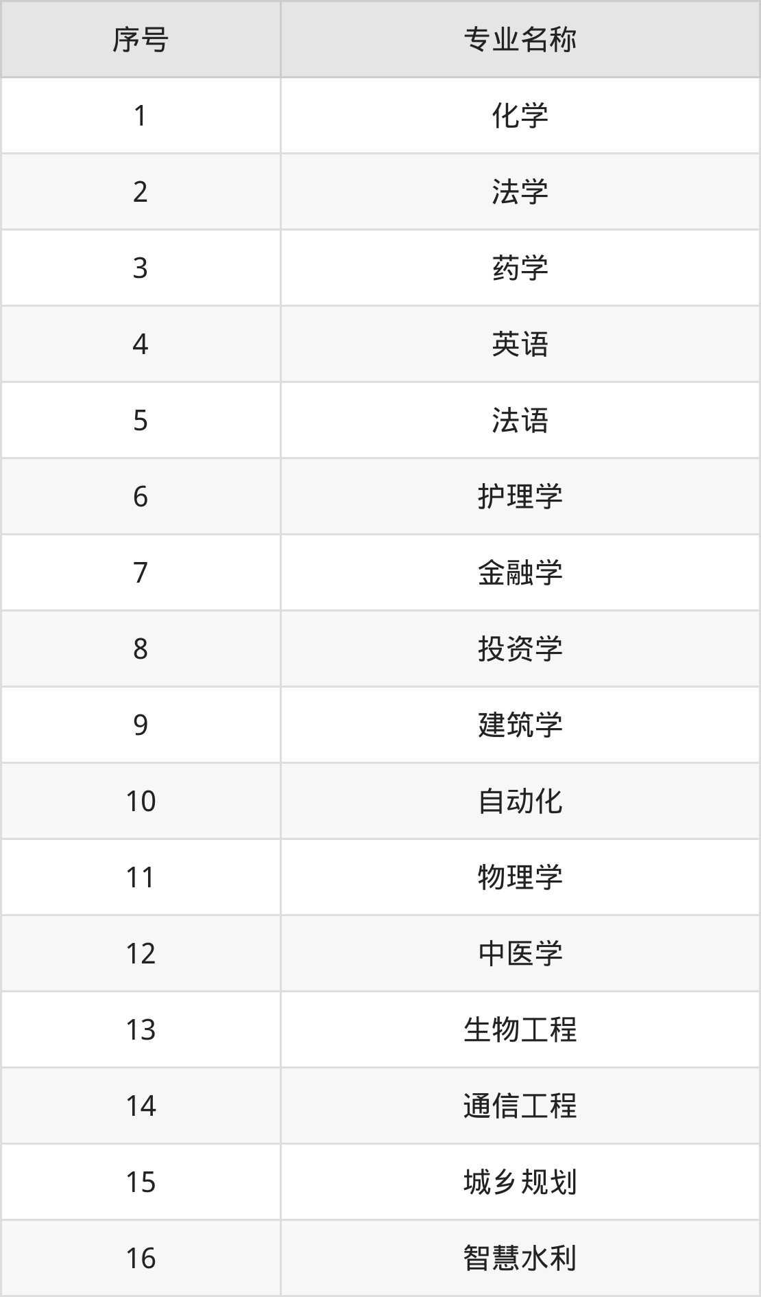 物理类(理科)本科招生专业:化学、药学、法学、英语、法语、物理学、金融学、投资学、建筑学、自动化等。