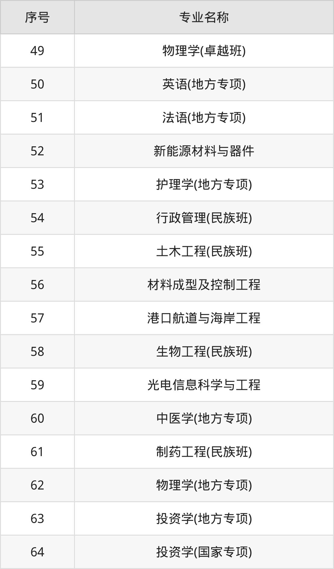 历史类(文科)本科招生专业:英语、法语、法学、金融学、投资学、建筑学、城乡规划、财务管理、行政管理、本科预科班等。