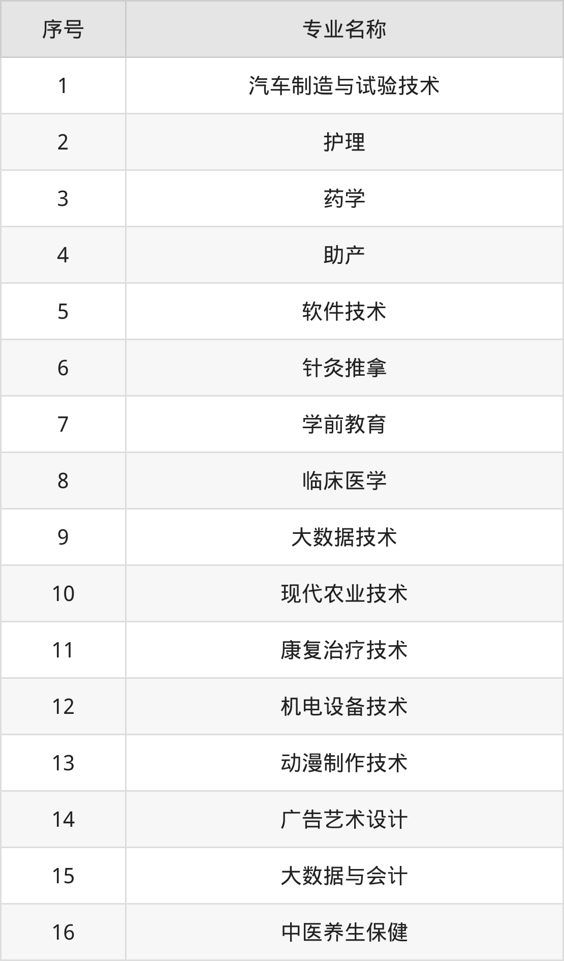 专科招生专业:
