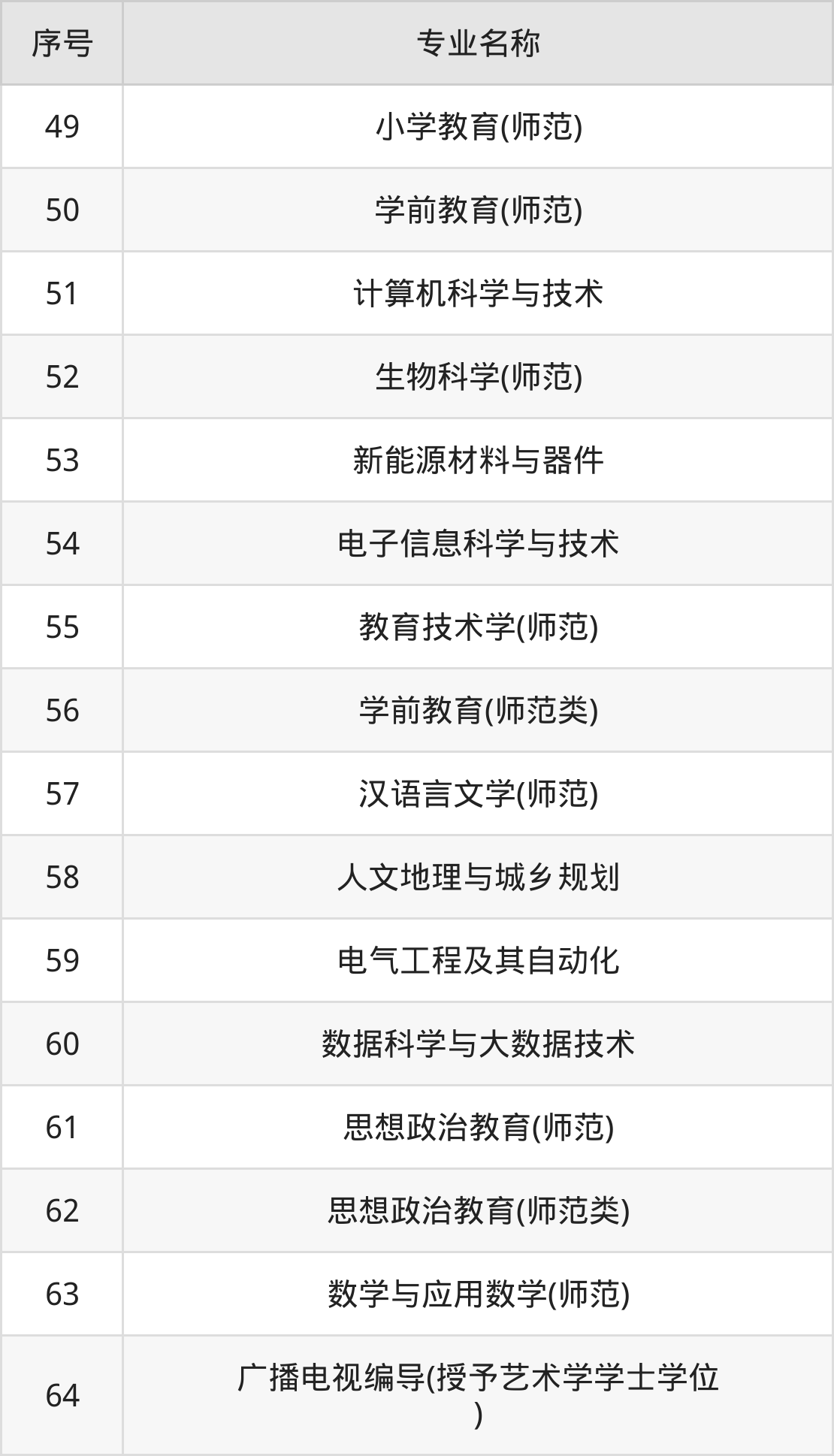 目前,淮阴师范学院公布了2024年本科招生专业,共69个。