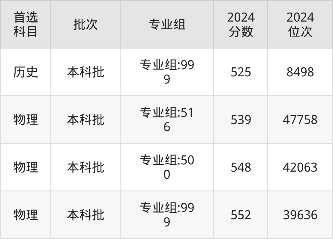 招生科类:物理、理科、历史、文科。