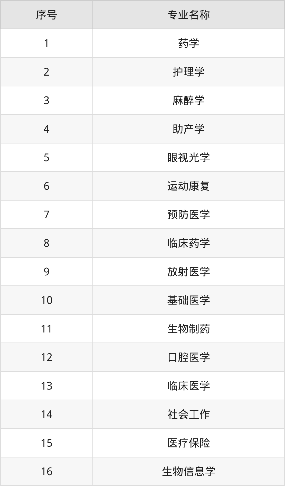 物理类(理科)本科招生专业:药学、护理学、麻醉学、助产学、眼视光学、生物制药、预防医学、临床药学、放射医学、基础医学等。