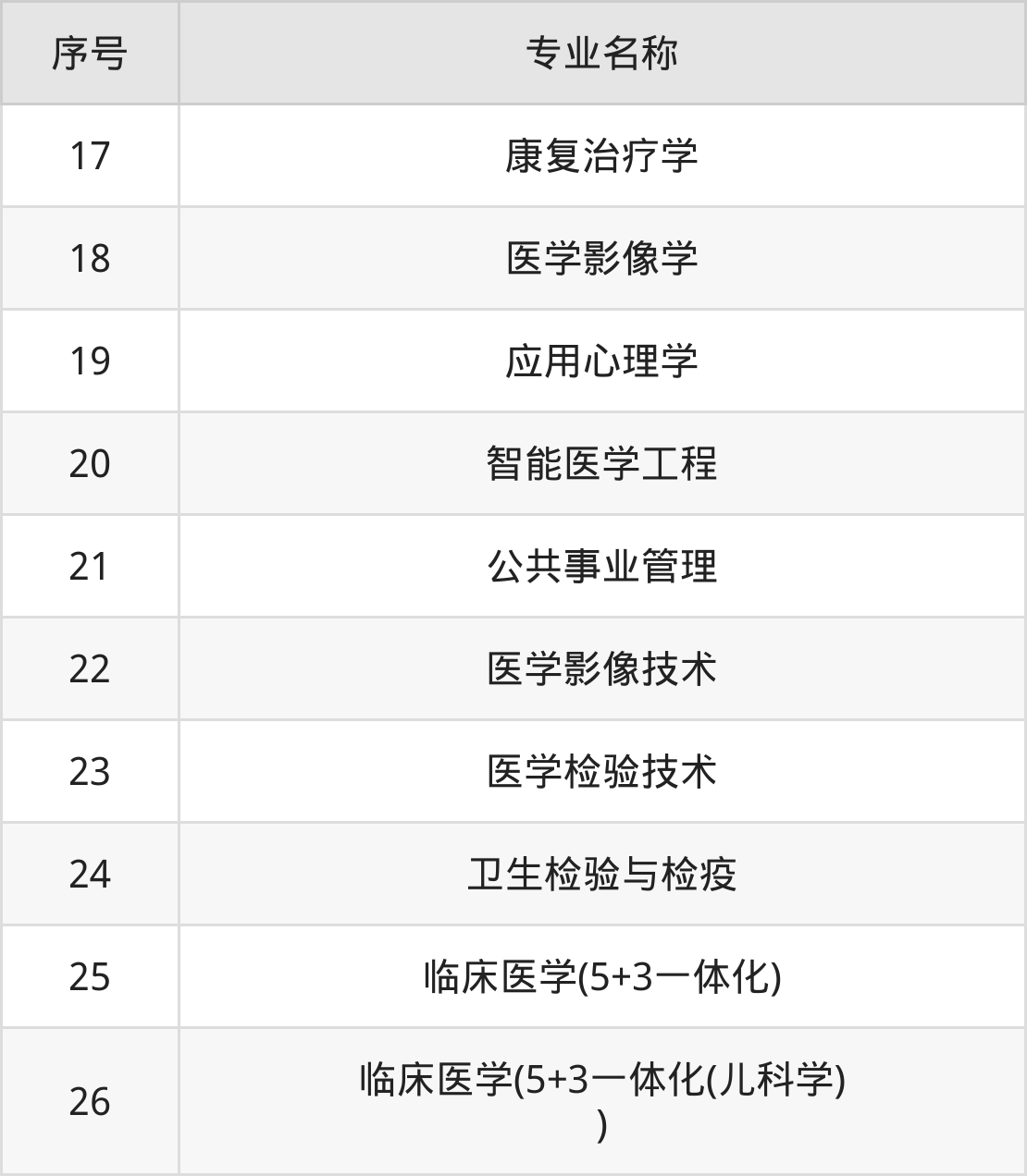 目前,福建医科大学公布了2024年本科招生专业,共26个。