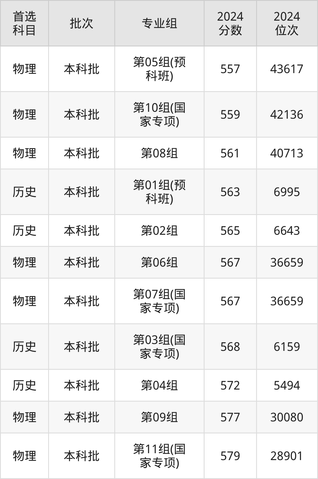 从2024年中南民族大学在湖北省内的录取分数线来看,本科批录取分数线都在550分以上,录取分数线最高的是第11组(国家专项),2024年最低分为579分;录取分数线最低的是第05组(预科班),2024年最低分为557分。