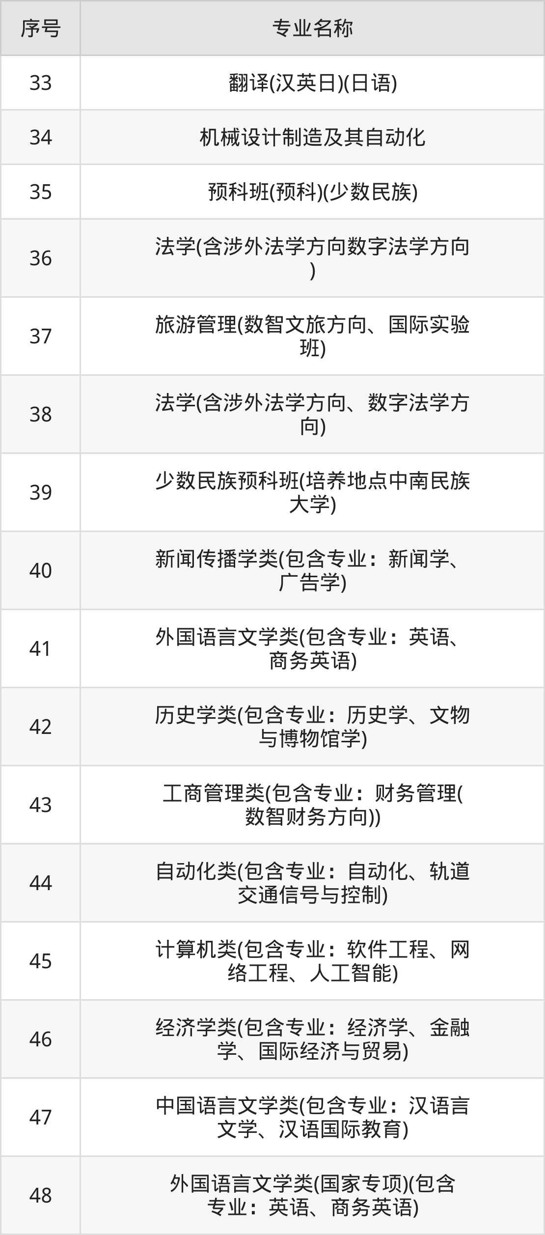 目前,中南民族大学公布了2024年本科招生专业,共90个。