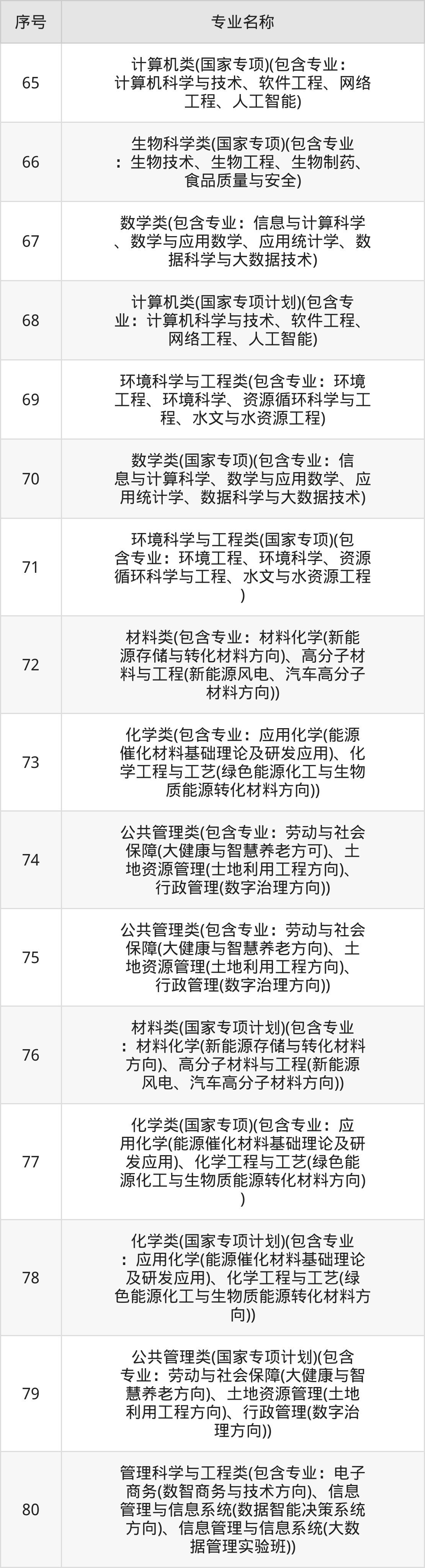 物理类(理科)本科招生专业:翻译、教育学、数学类、建筑学、社会学、材料类、预科班、自动化类、计算机类、数字经济等。