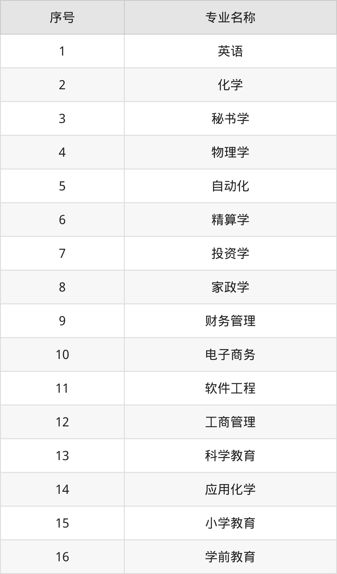 历史类(文科)本科招生专业:英语、秘书学、家政学、学前教育、财务管理、行政管理、旅游管理、小学教育、工商管理、商务英语等。