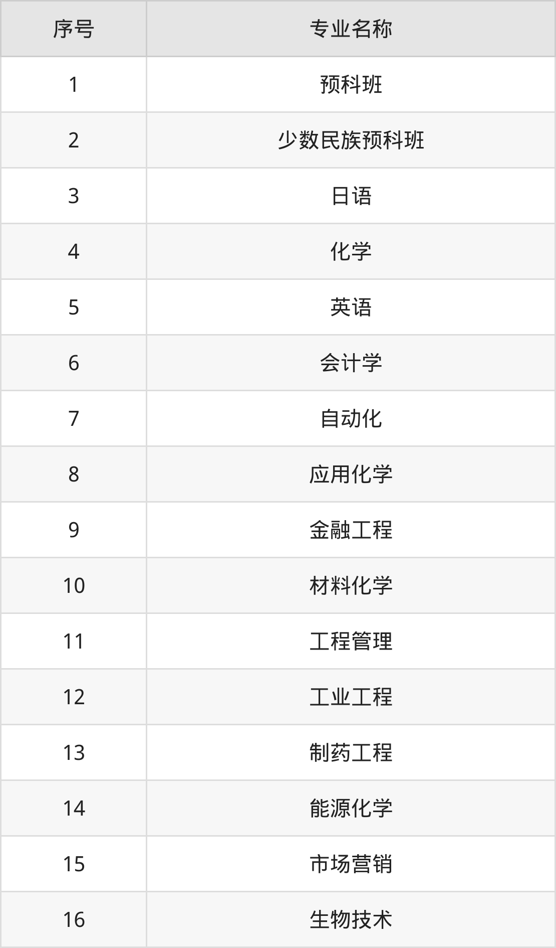 物理类(理科)本科招生专业:预科班、少数民族预科班、日语、化学、英语、会计学、自动化、应用化学、金融工程、材料化学等。