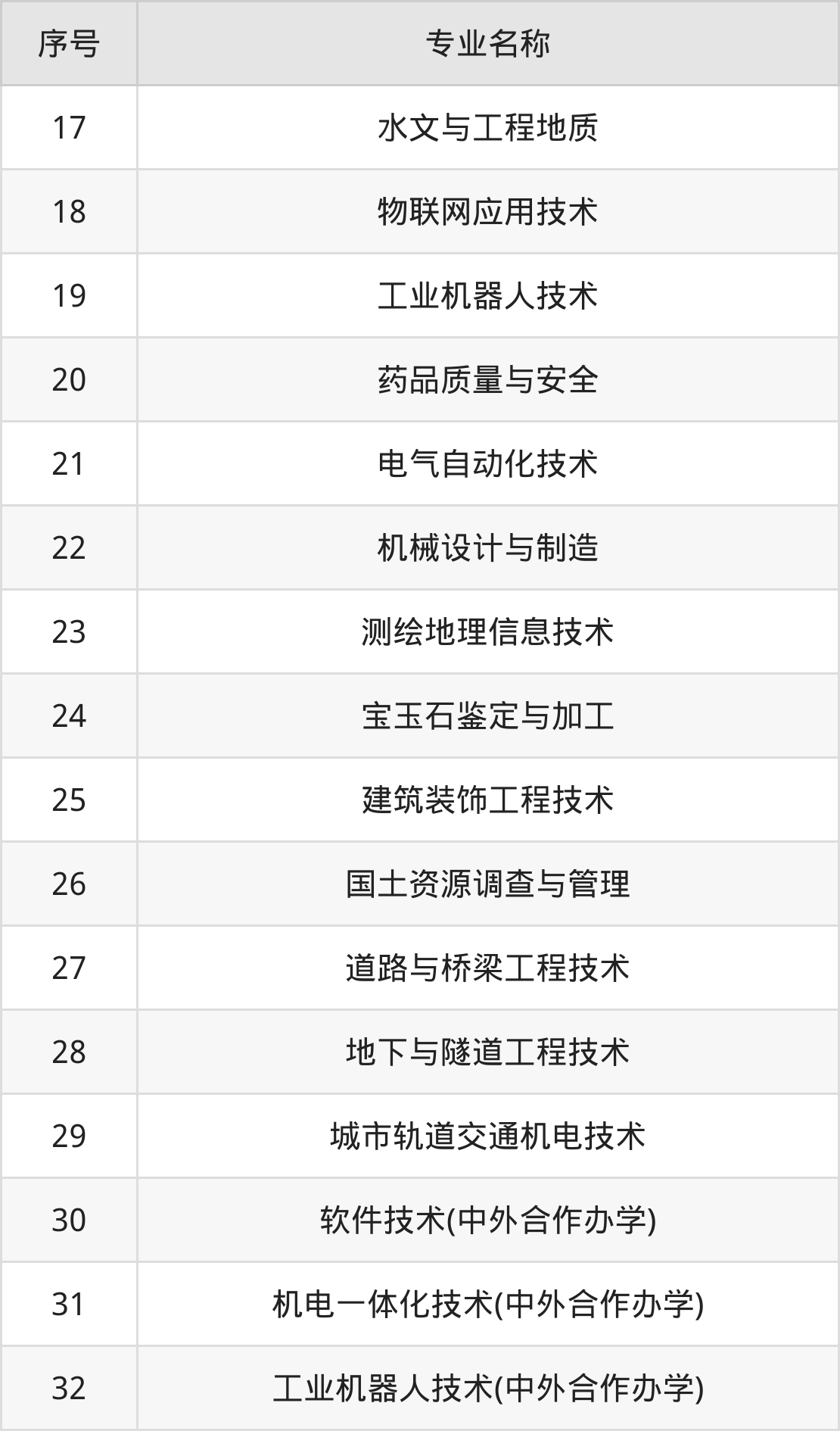 三、重庆工程职业技术学院2024招生专业