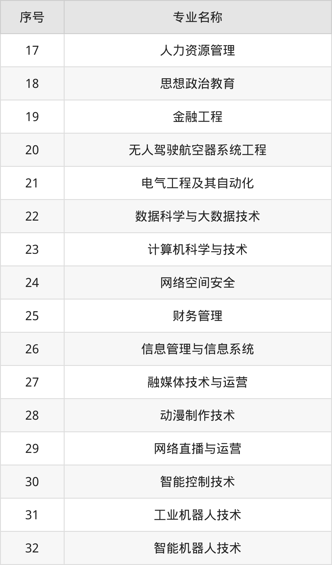 历史类(文科)本科招生专业:英语、工商管理、汉语言文学。