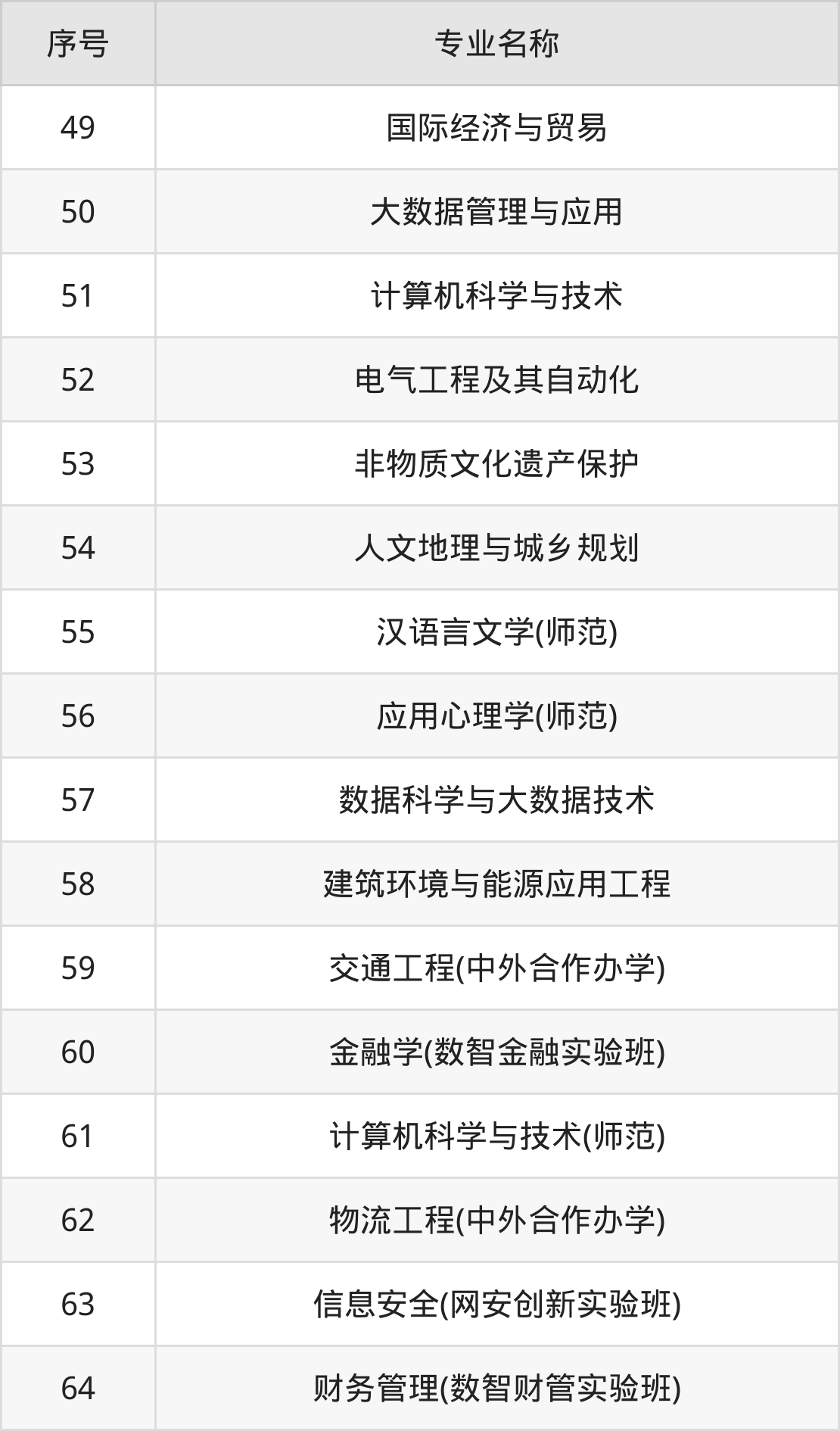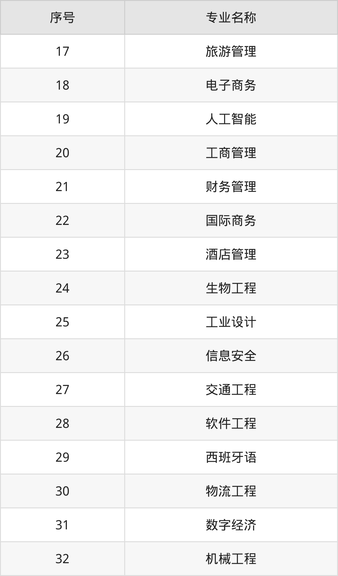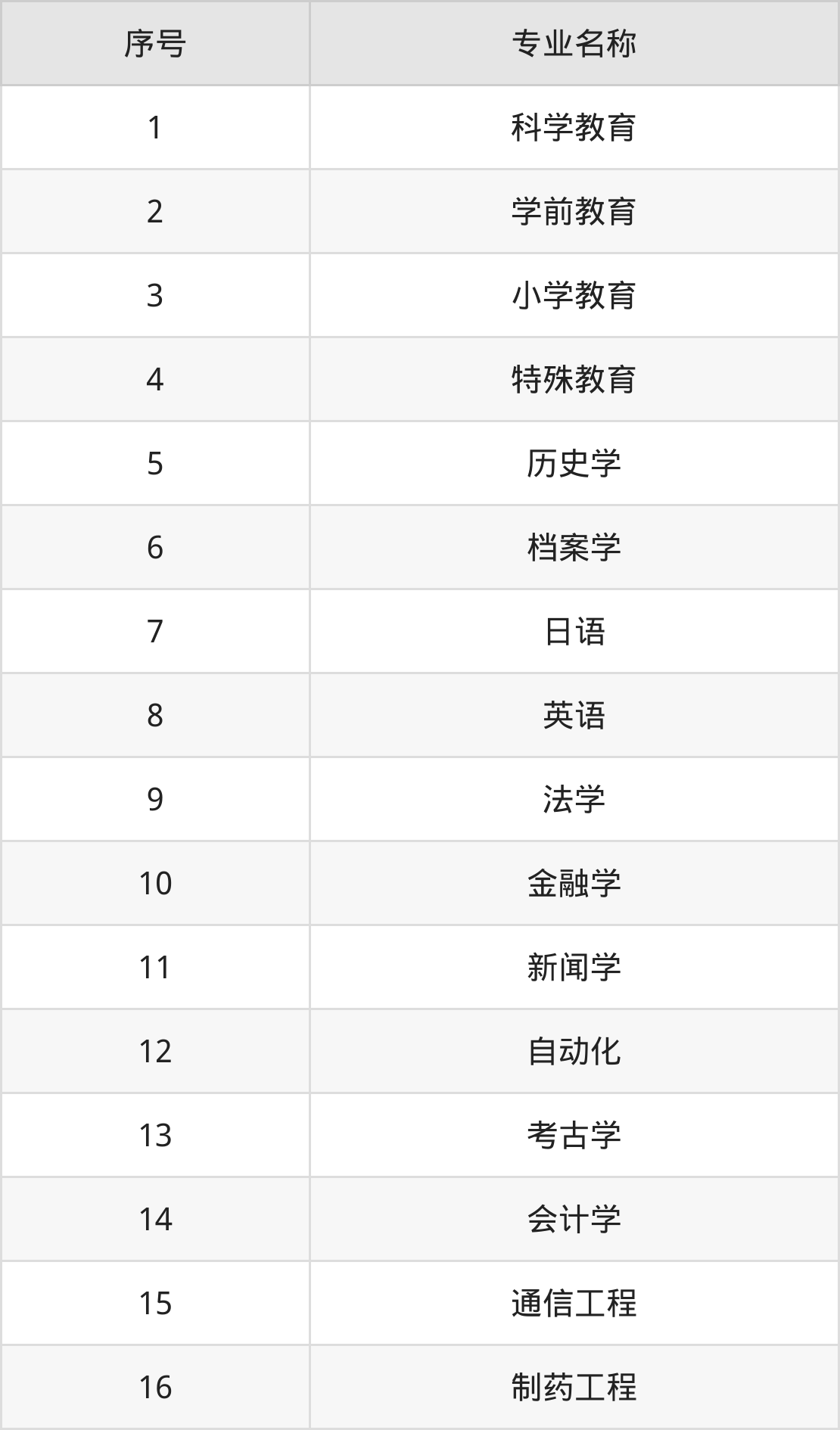 历史类(文科)本科招生专业:法学、英语、日语、金融学、会计学、新闻学、考古学、财务管理、国际商务、旅游管理等。