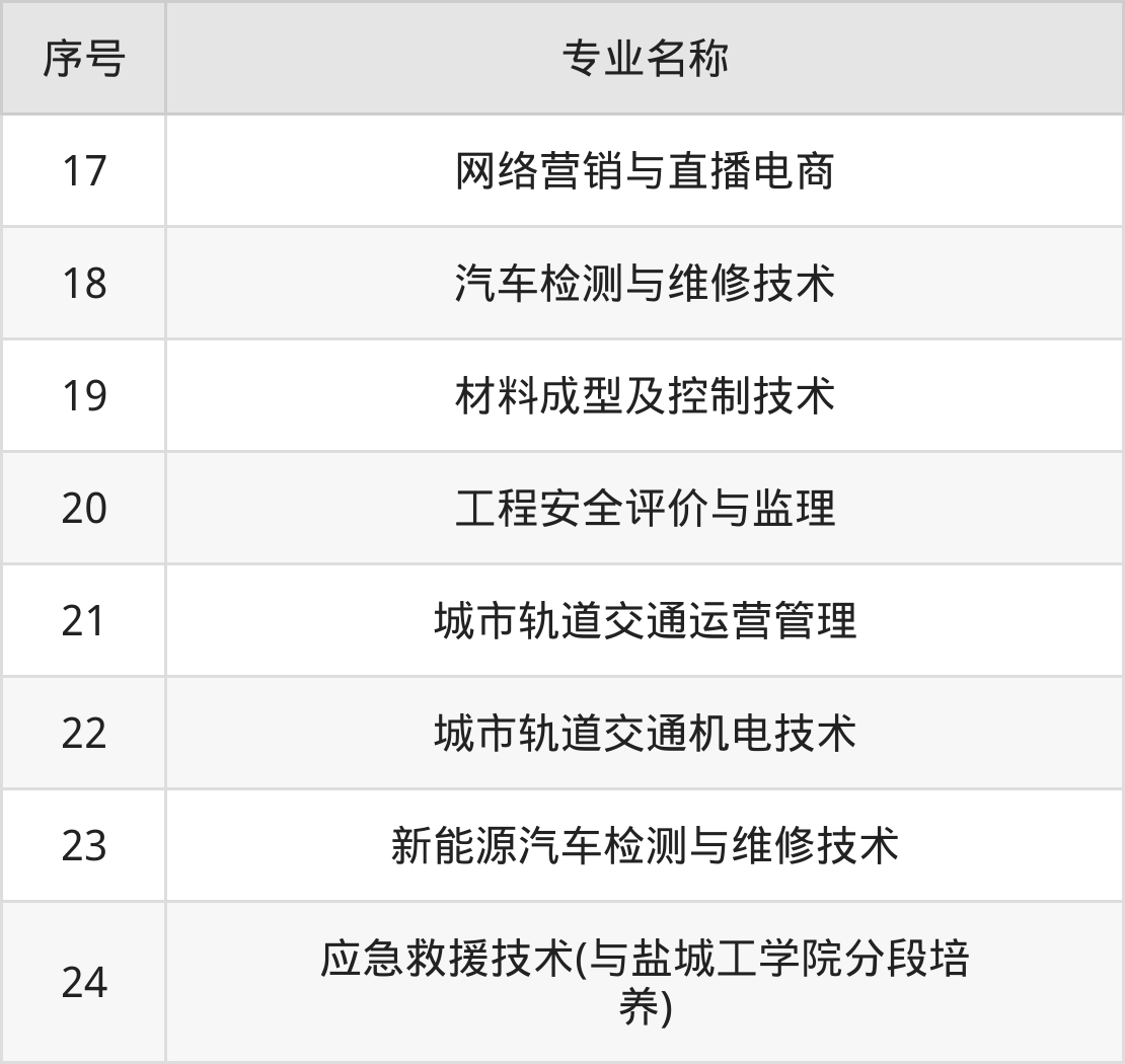 目前,江苏安全技术职业学院公布了2024年专科招生专业,共24个。