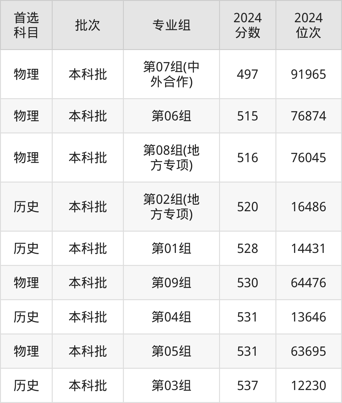 从2024年湖北师范大学在湖北省内的录取分数线来看,本科批录取分数线都在490分以上,录取分数线最高的是第03组,2024年最低分为537分;录取分数线最低的是第07组(中外合作),2024年最低分为497分。