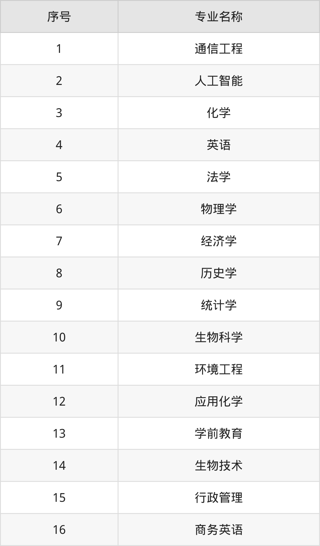物理类(理科)本科招生专业:通信工程、人工智能、化学、法学、英语、物理学、经济学、统计学、商务英语、应用化学等。