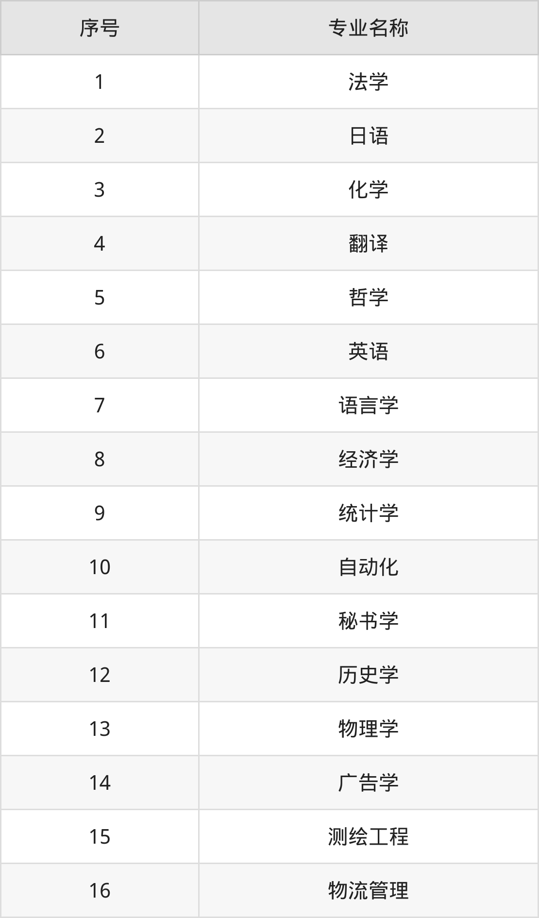 物理类(理科)本科招生专业:翻译、日语、法学、英语、哲学、化学、统计学、秘书学、自动化、广告学等。