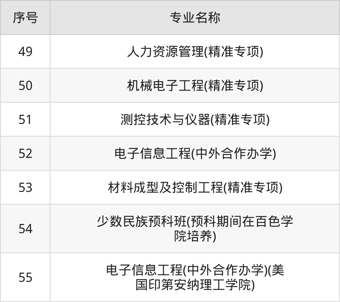 目前,桂林航天工业学院公布了2024年本科招生专业,共55个;2024年专科招生专业为8个。
