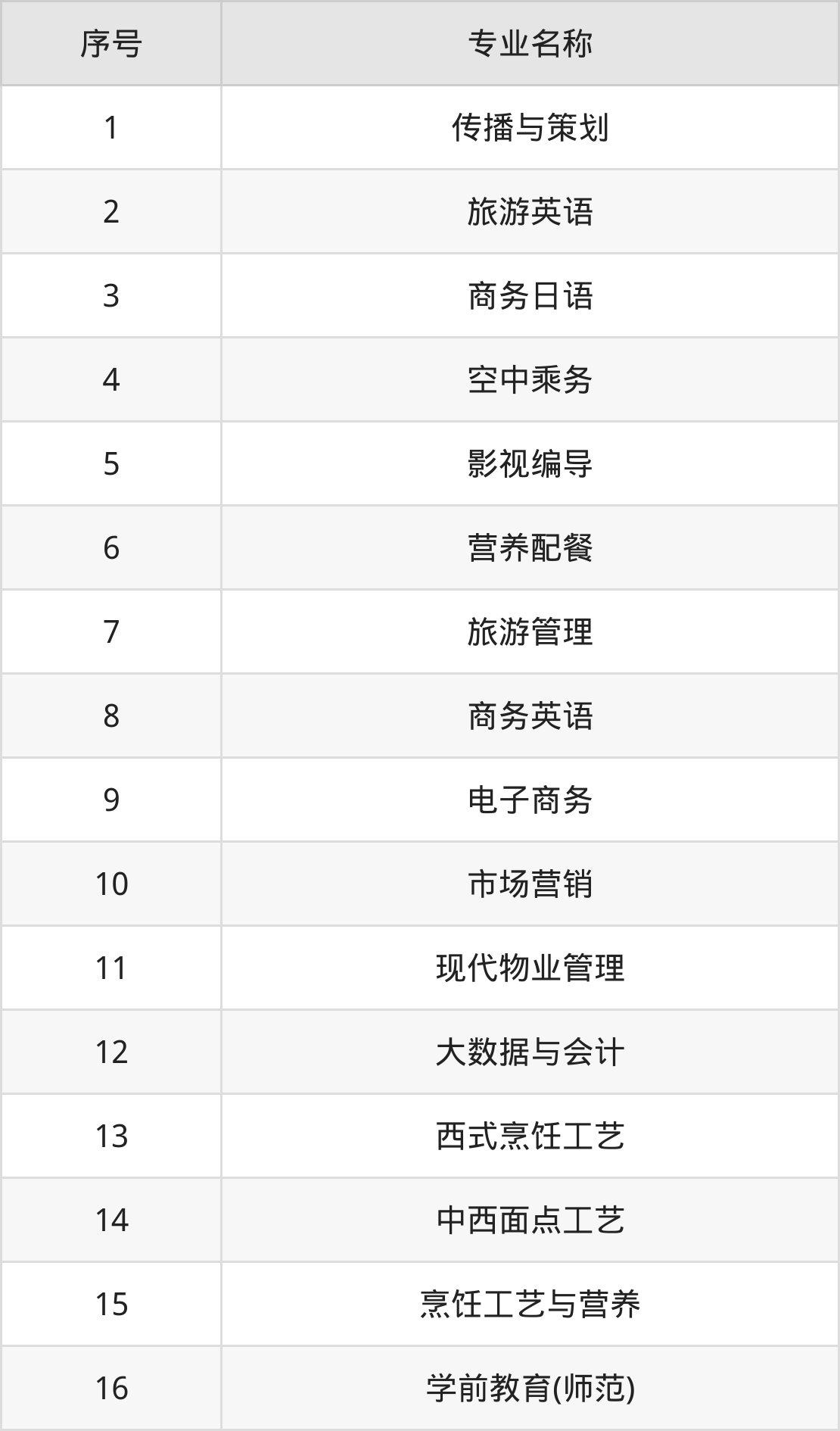 目前,广东文艺职业学院公布了2024年专科招生专业,共19个。