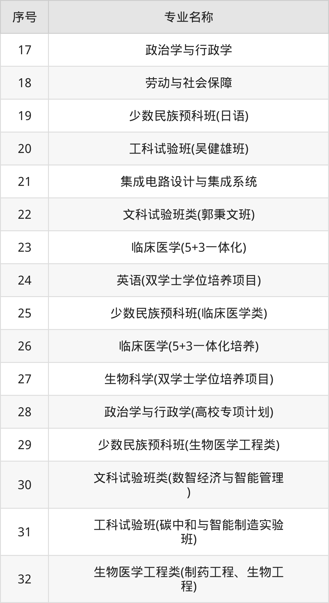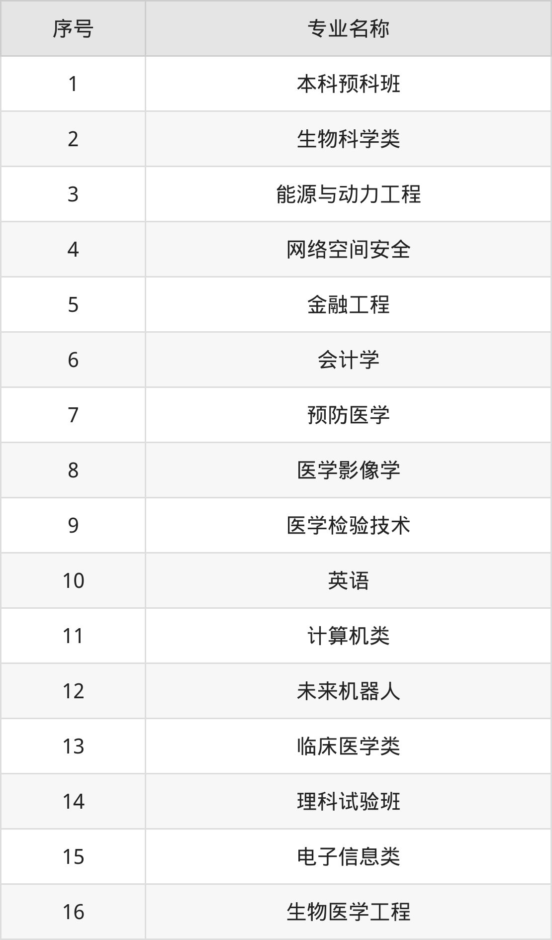 物理类(理科)本科招生专业:本科预科班、生物科学类、能源与动力工程、网络空间安全、金融工程、会计学、预防医学、医学影像学、医学检验技术、计算机类等。