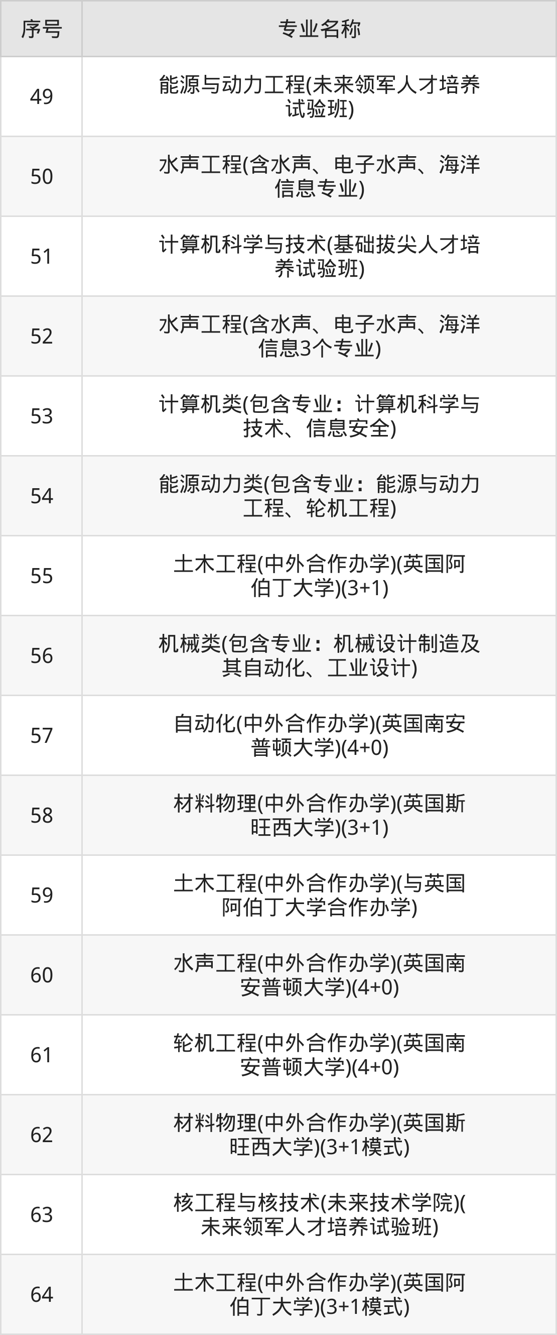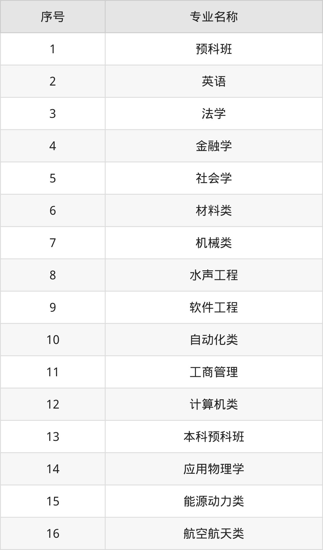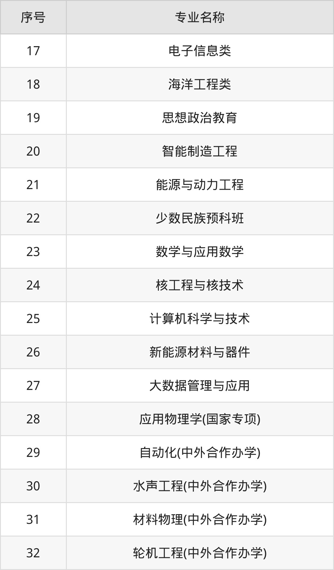 物理类(理科)本科招生专业:预科班、材料类、机械类、计算机类、水声工程、自动化类、软件工程、电子信息类、应用物理学、航空航天类等。