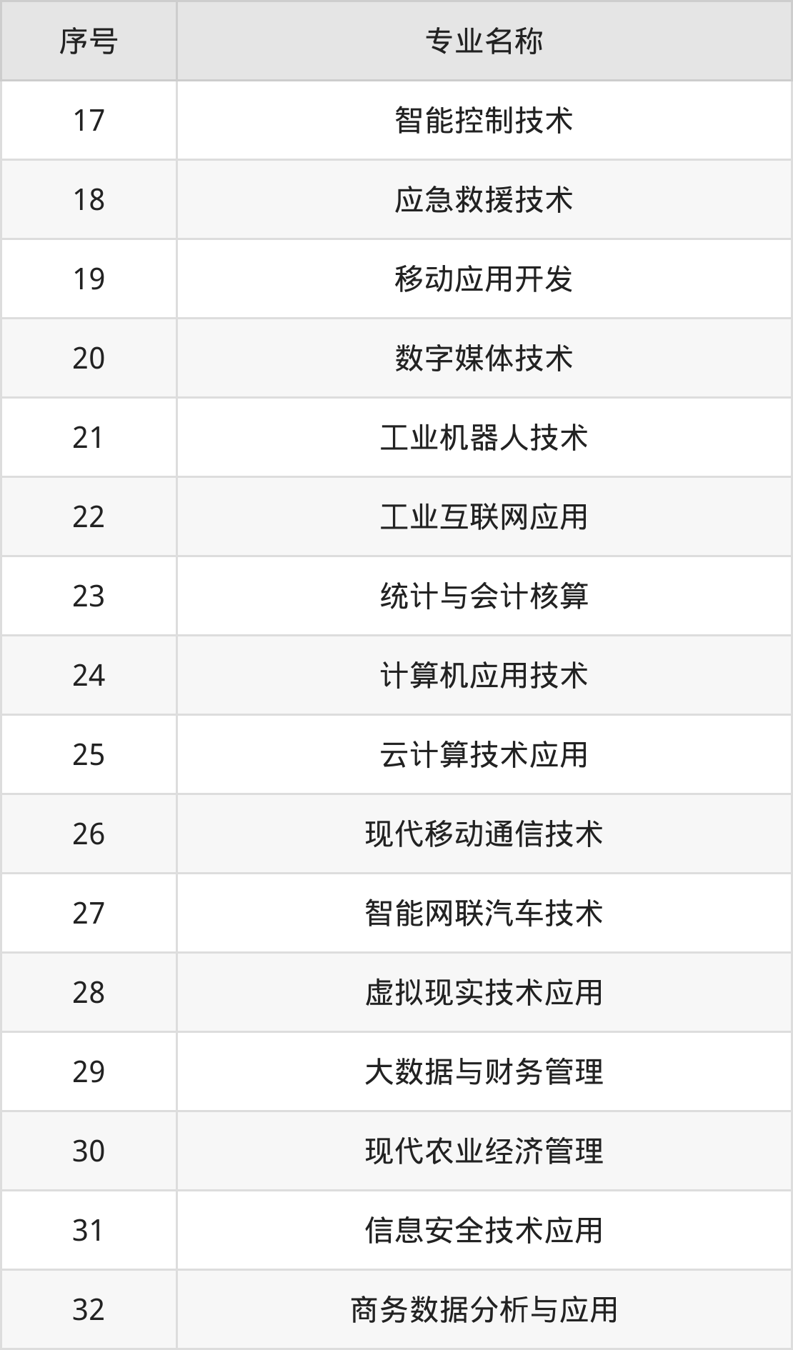 专科招生专业: