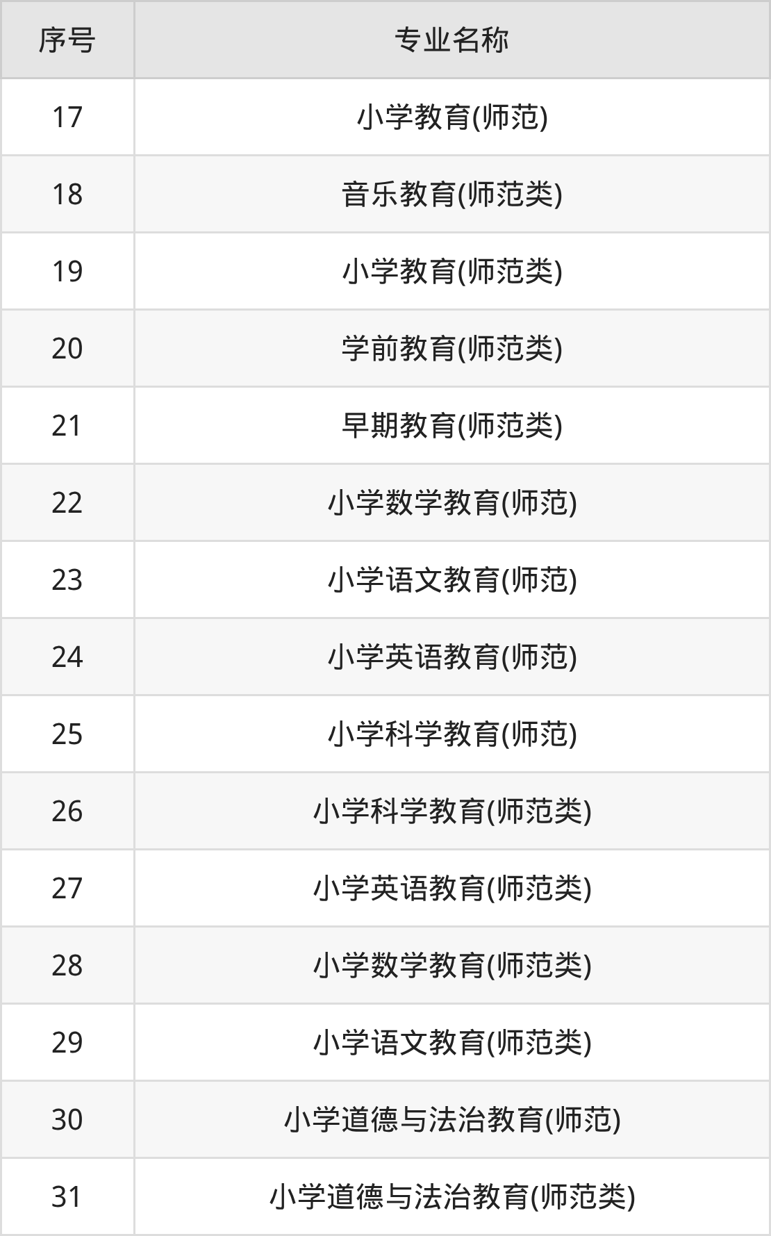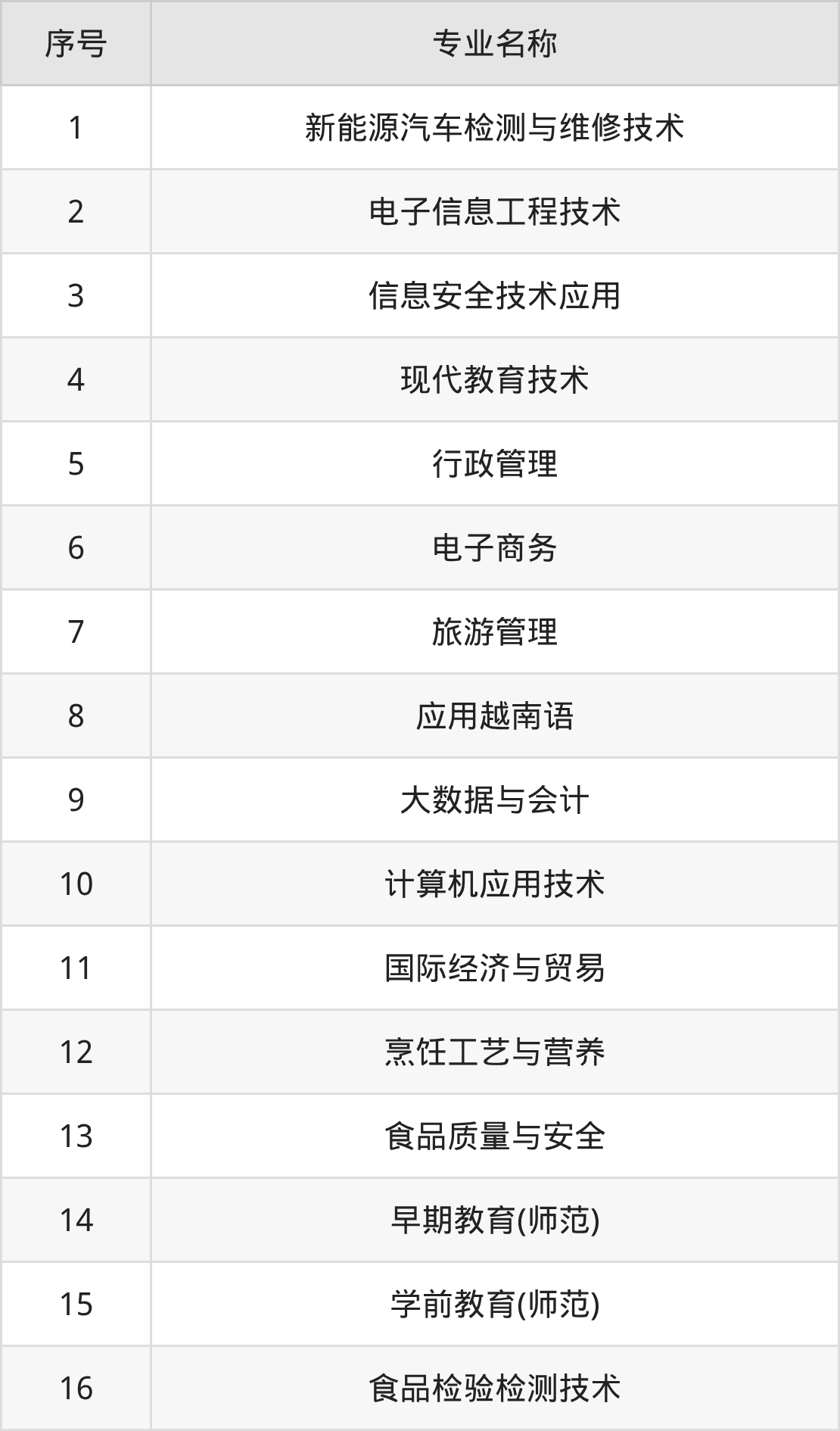 目前,崇左幼儿师范高等专科学校公布了2025年专科招生专业,共31个。