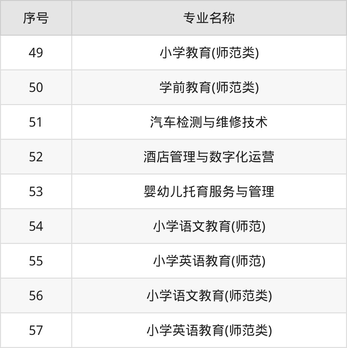 目前,周口职业技术学院公布了2024年专科招生专业,共57个。