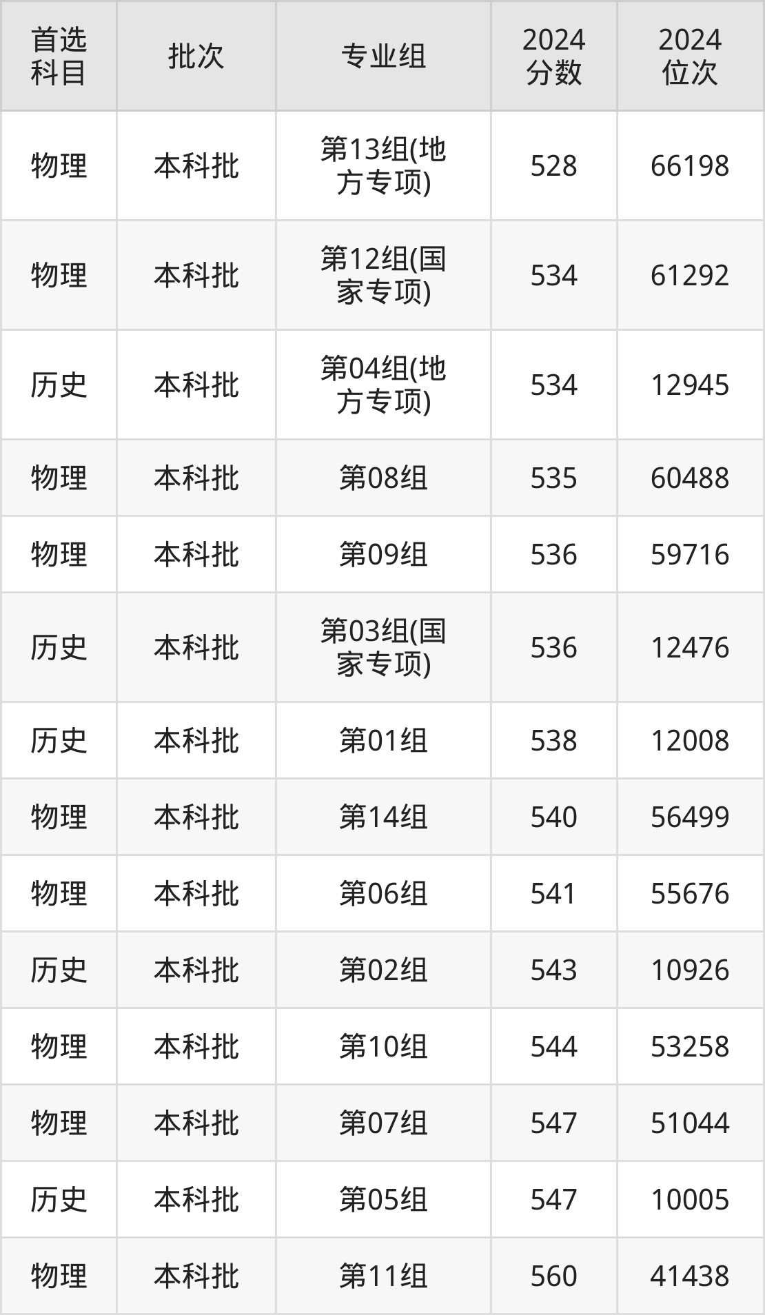 从2024年长江大学在湖北省内的录取分数线来看,本科批录取分数线都在520分以上,录取分数线最高的是第11组,2024年最低分为560分;录取分数线最低的是第13组(地方专项),2024年最低分为528分。