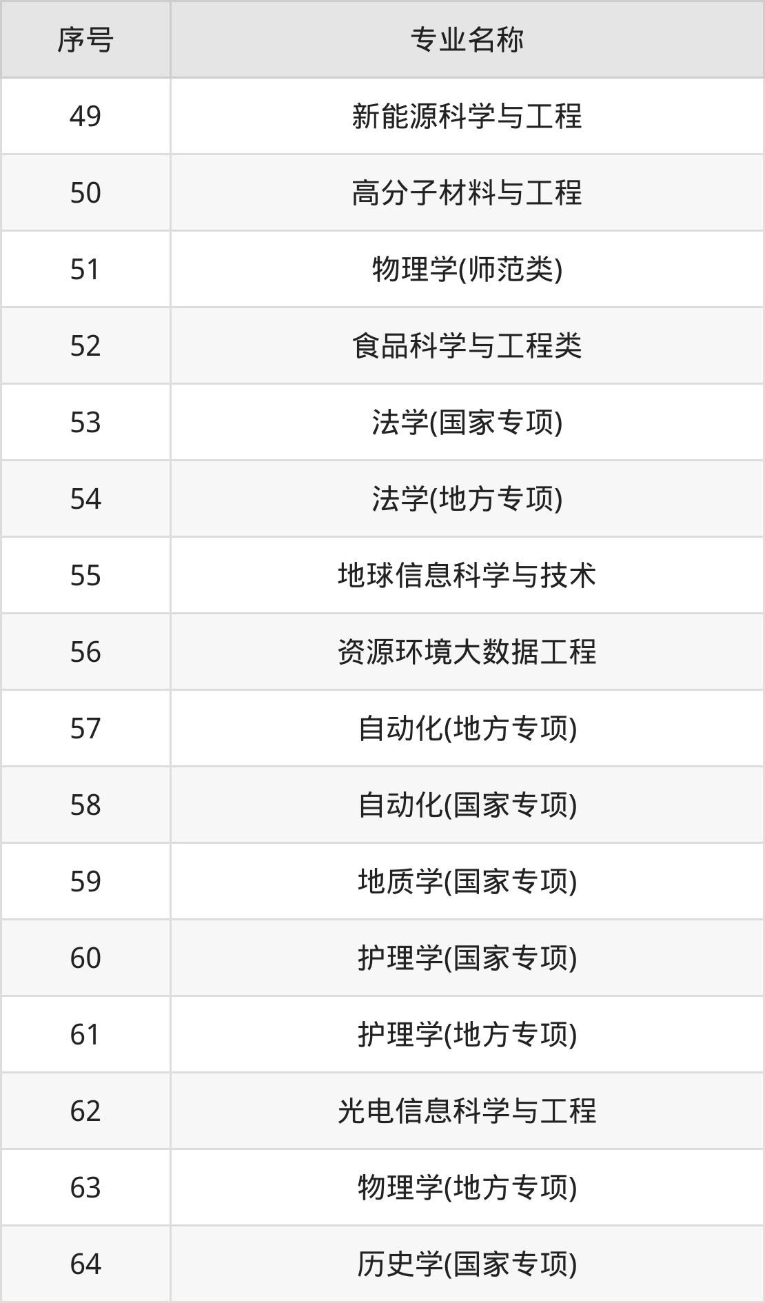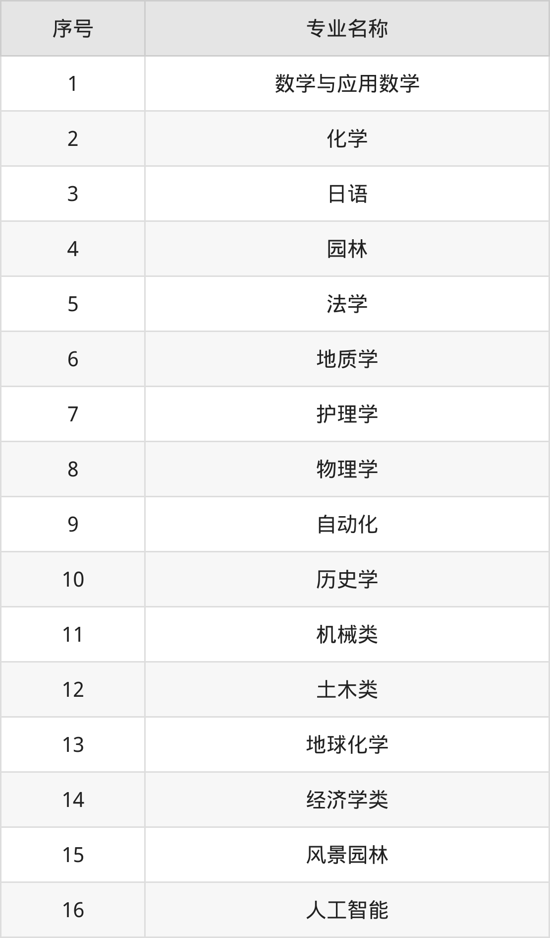 物理类(理科)本科招生专业:数学与应用数学、化学、法学、园林、日语、地质学、机械类、物理学、自动化、护理学等。