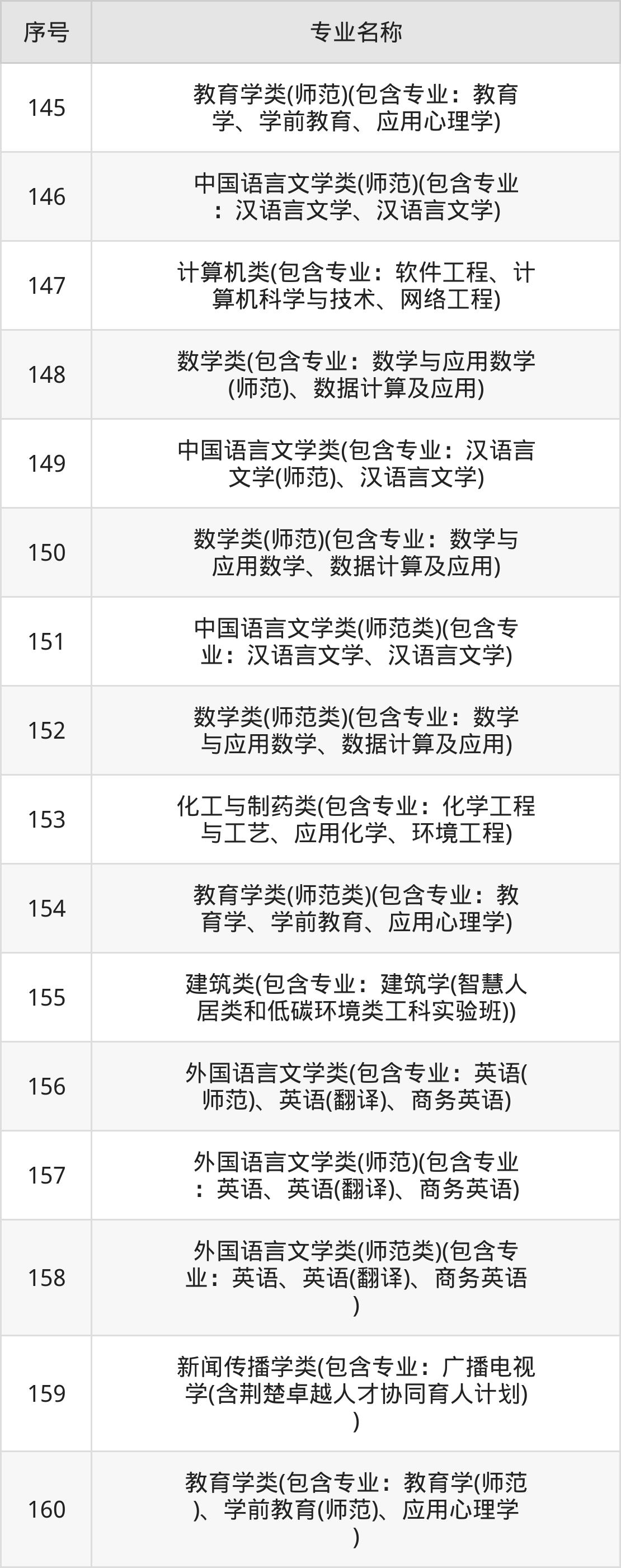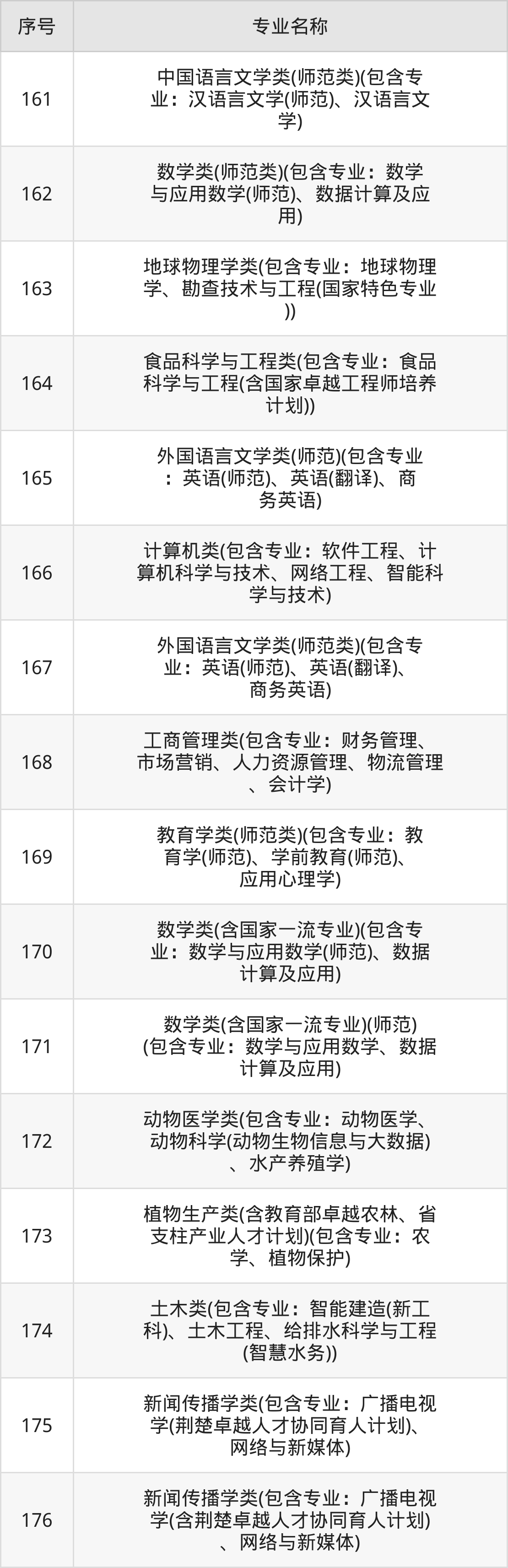 历史类(文科)本科招生专业:法学、日语、园林、护理学、历史学、社会工作、经济学类、工商管理类、思想政治教育、历史学(师范)等。