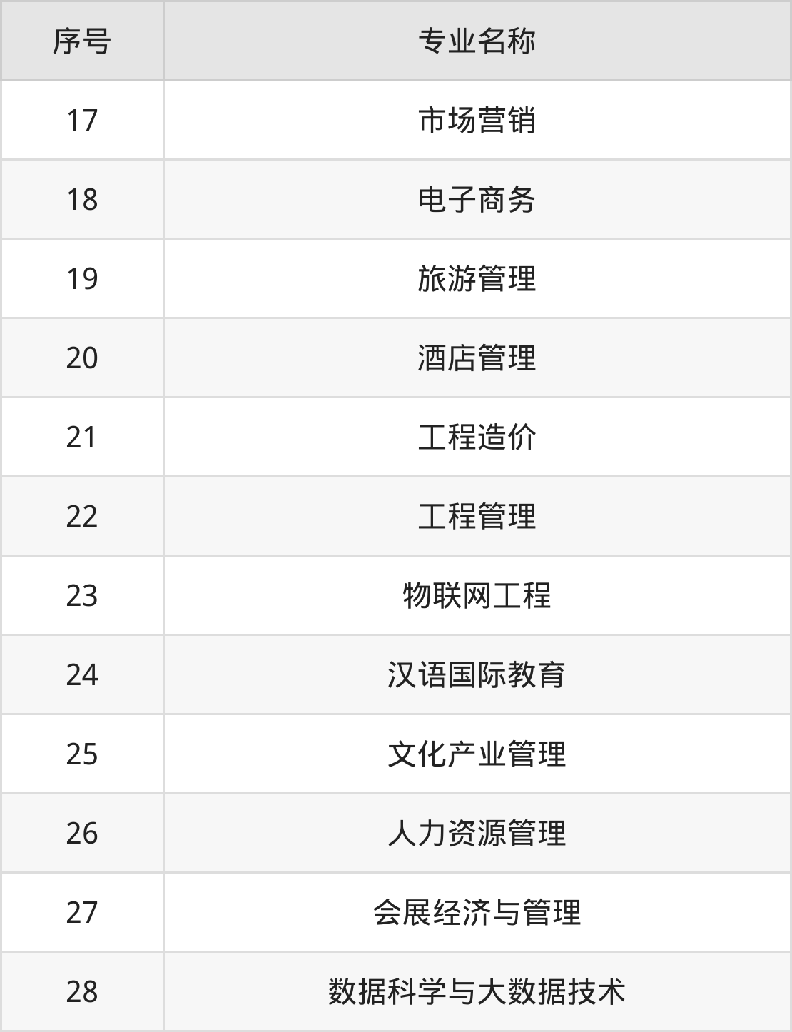 目前,长春大学旅游学院公布了2024年本科招生专业,共28个;2024年专科招生专业为4个。