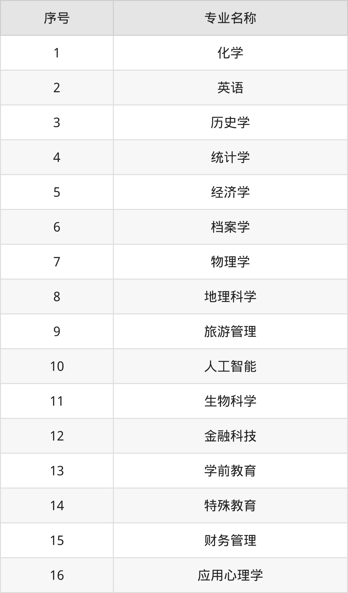 物理类(理科)本科招生专业:化学、英语、经济学、物理学、统计学、档案学、旅游管理、金融科技、地理科学、生物科学等。