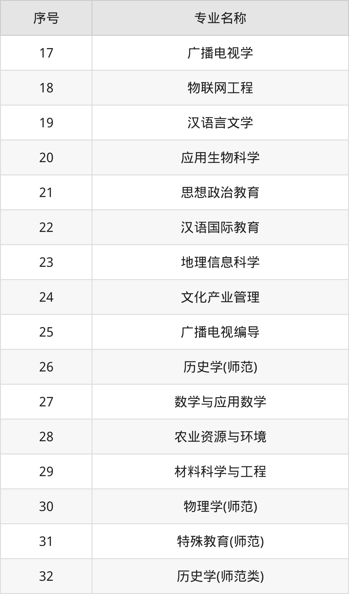 历史类(文科)本科招生专业:历史学、档案学、经济学、财务管理、学前教育、地理科学、特殊教育、旅游管理、应用心理学、广播电视学等。