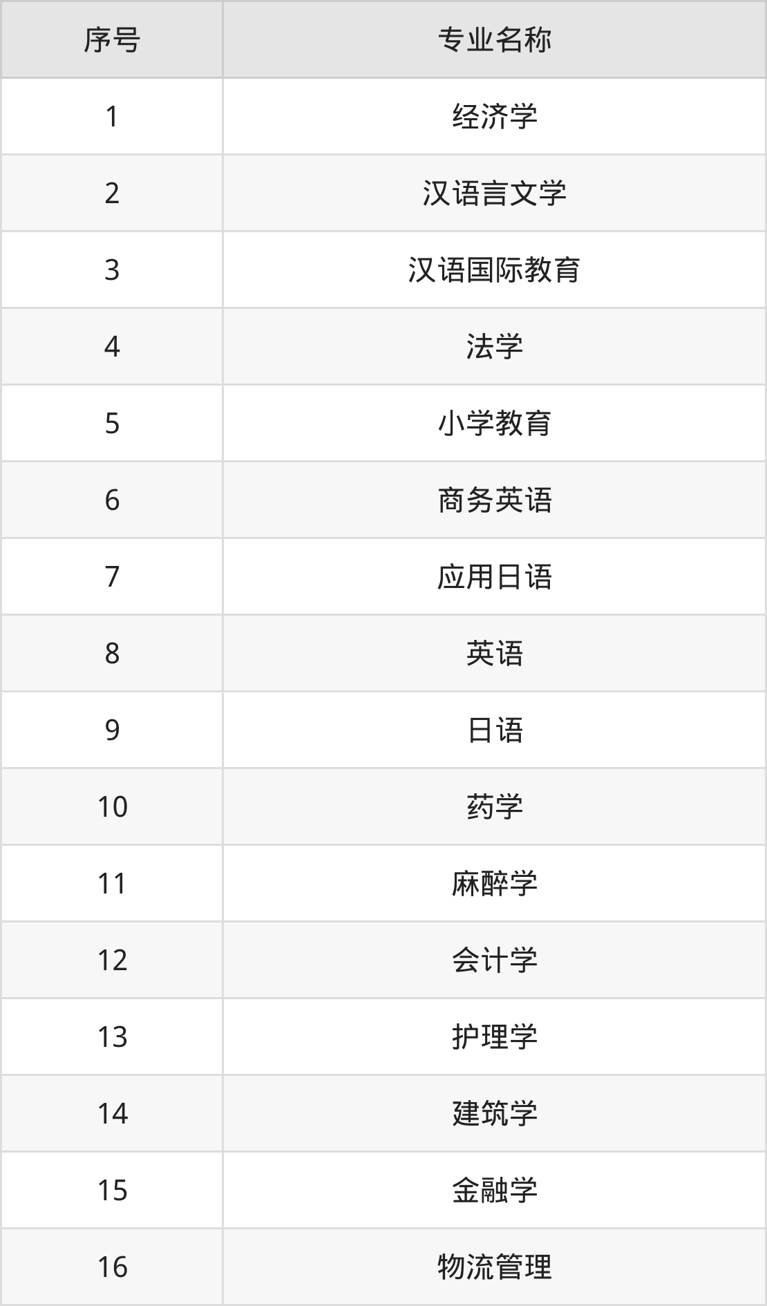 历史类(文科)本科招生专业:日语、英语、金融学、会计学、物流管理、市场营销、工商管理、学前教育、本科预科班、人力资源管理等。