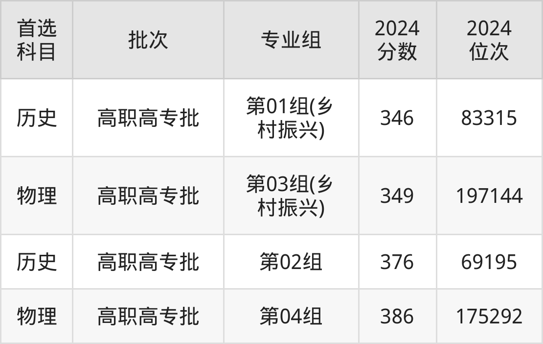 2024年湖北国土资源职业学院在湖北省内专科批的录取分数线都在340分以上,在历史类的录取分数线在346分-376分之间;物理类的录取分数线在349分-386分之间。
