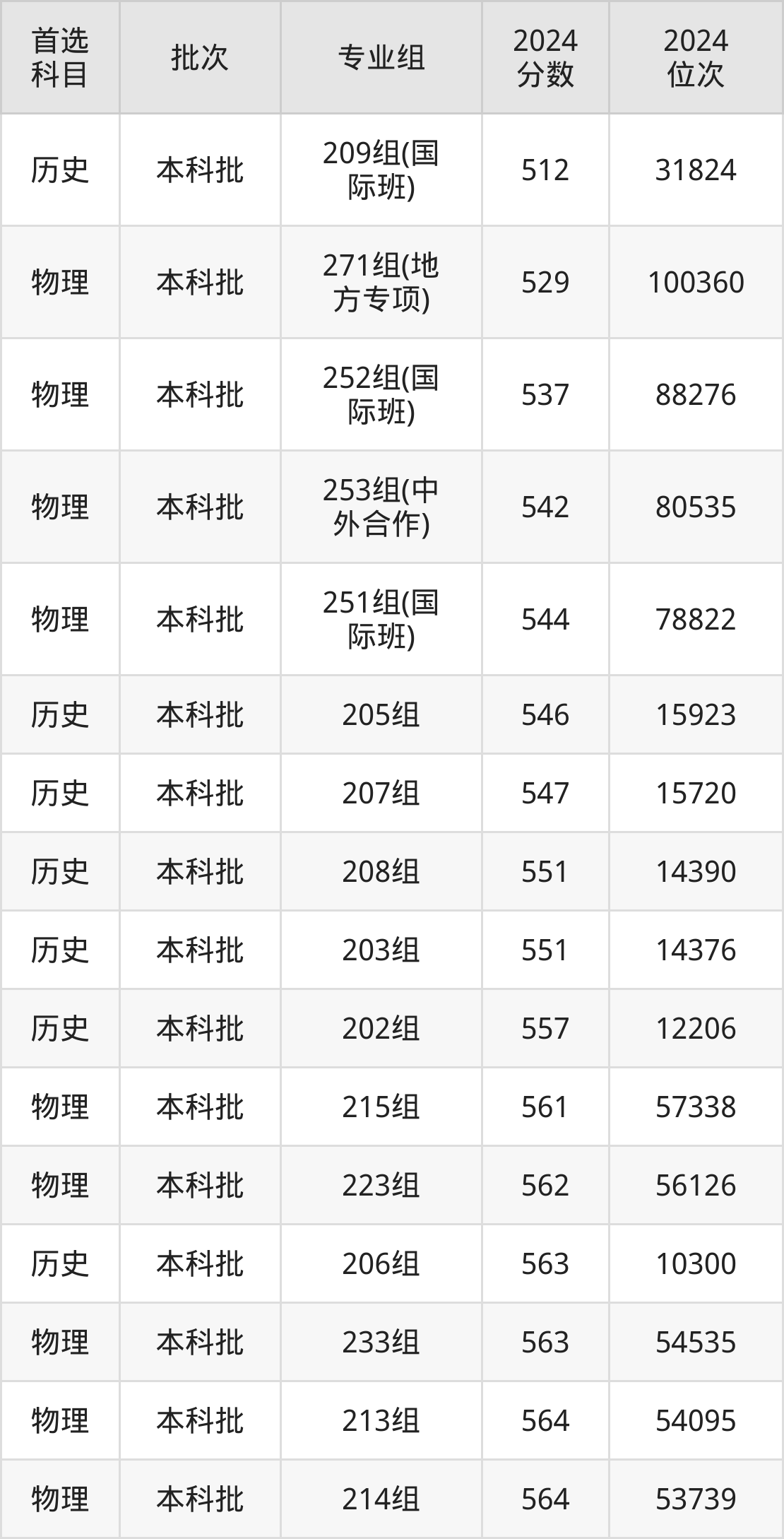 从2024年华南农业大学在广东省内的录取分数线来看,本科批录取分数线都在510分以上,录取分数线最高的是230组,2024年最低分为586分;录取分数线最低的是209组(国际班),2024年最低分为512分。