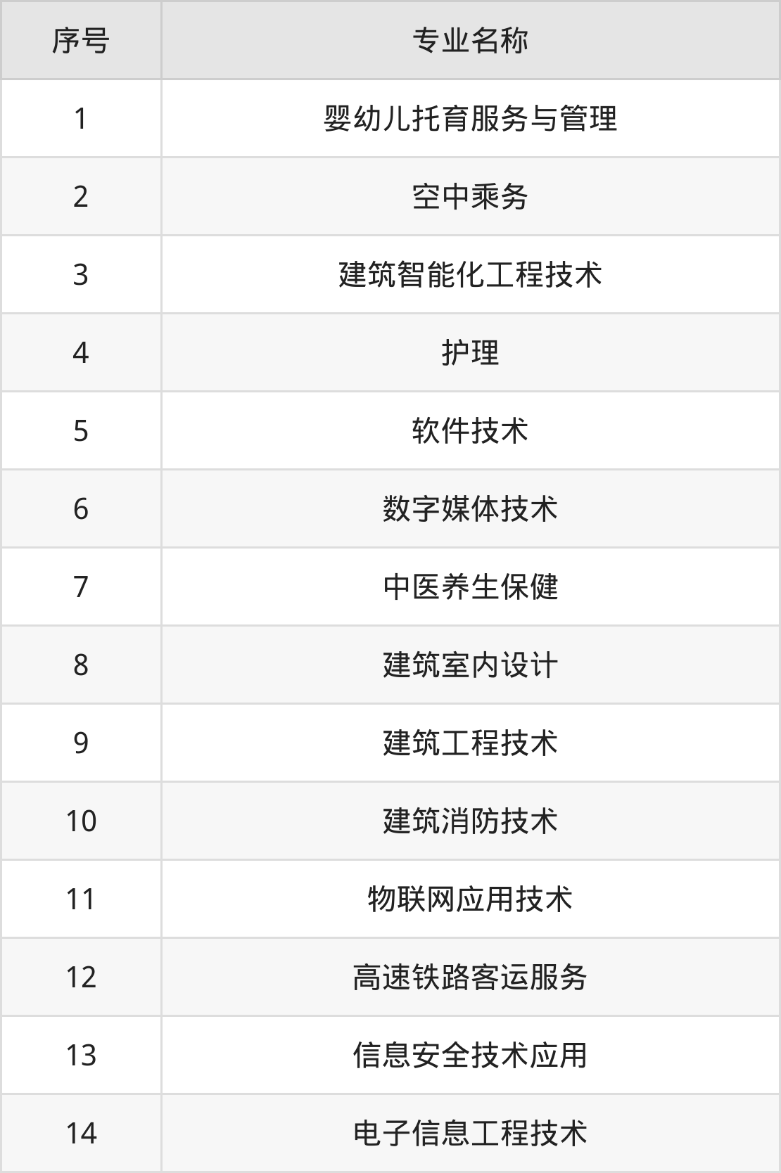 目前,厦门安防科技职业学院公布了2024年专科招生专业,共14个。