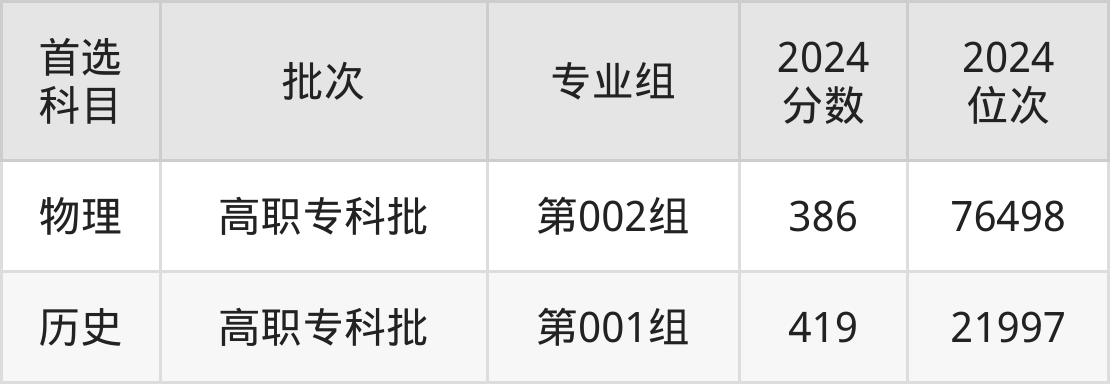 2024年白城医学高等专科学校在黑龙江省内专科批的录取分数线都在380分以上,在历史类的录取分数线为419分;物理类的录取分数线为386分。