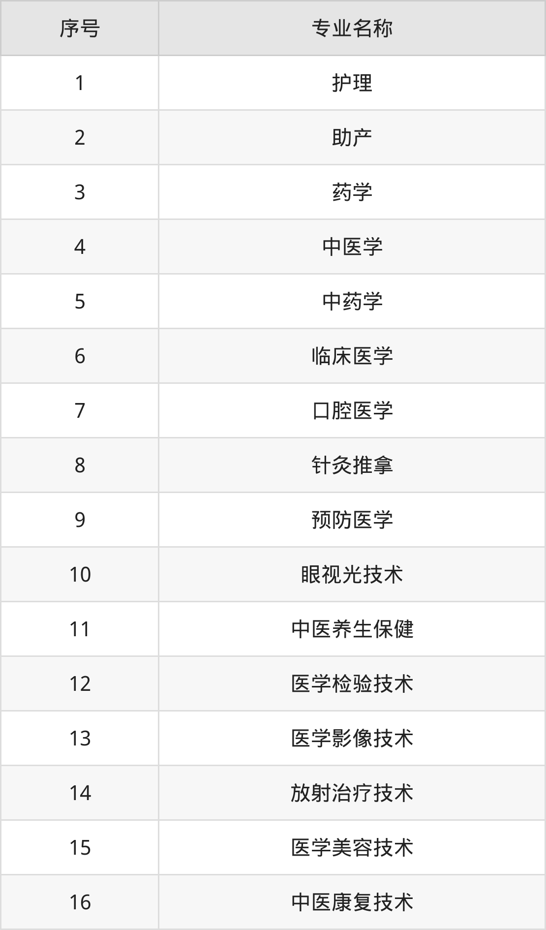 目前,白城医学高等专科学校公布了2024年专科招生专业,共20个。