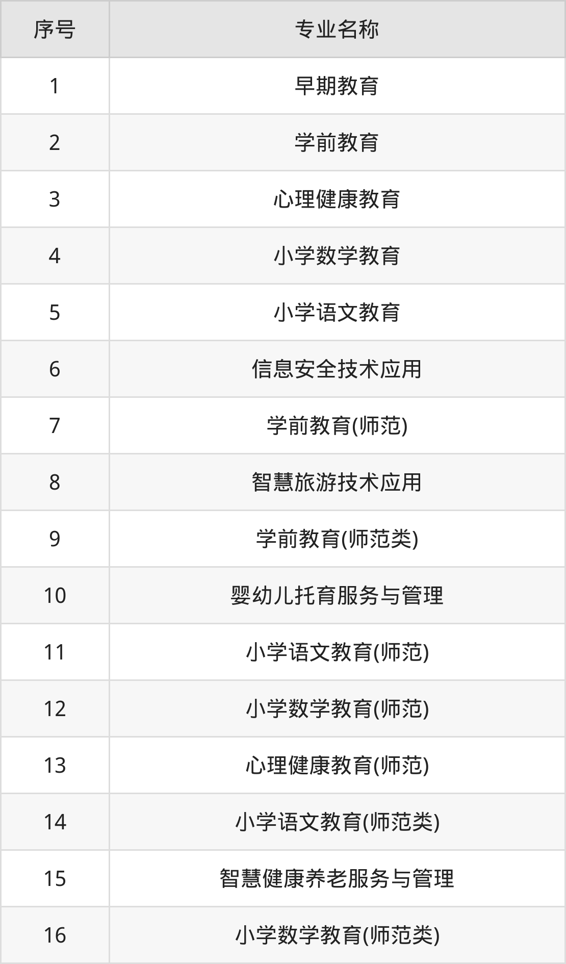 目前,邯郸幼儿师范高等专科学校公布了2024年专科招生专业,共17个。