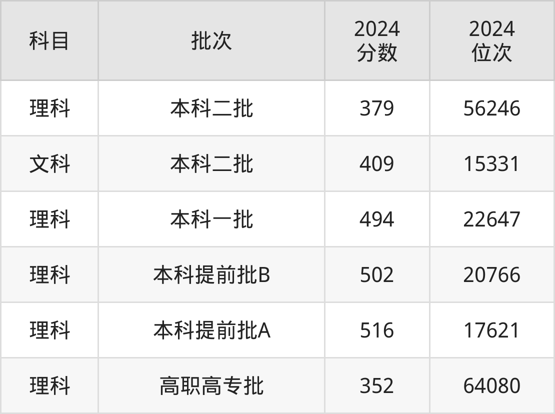 从2024年赤峰学院在内蒙古自治区内的录取分数线来看,本科批录取分数线都在370分以上,录取分数线最高的是理科,2024年最低分为516分;录取分数线最低的是理科,2024年最低分为379分。