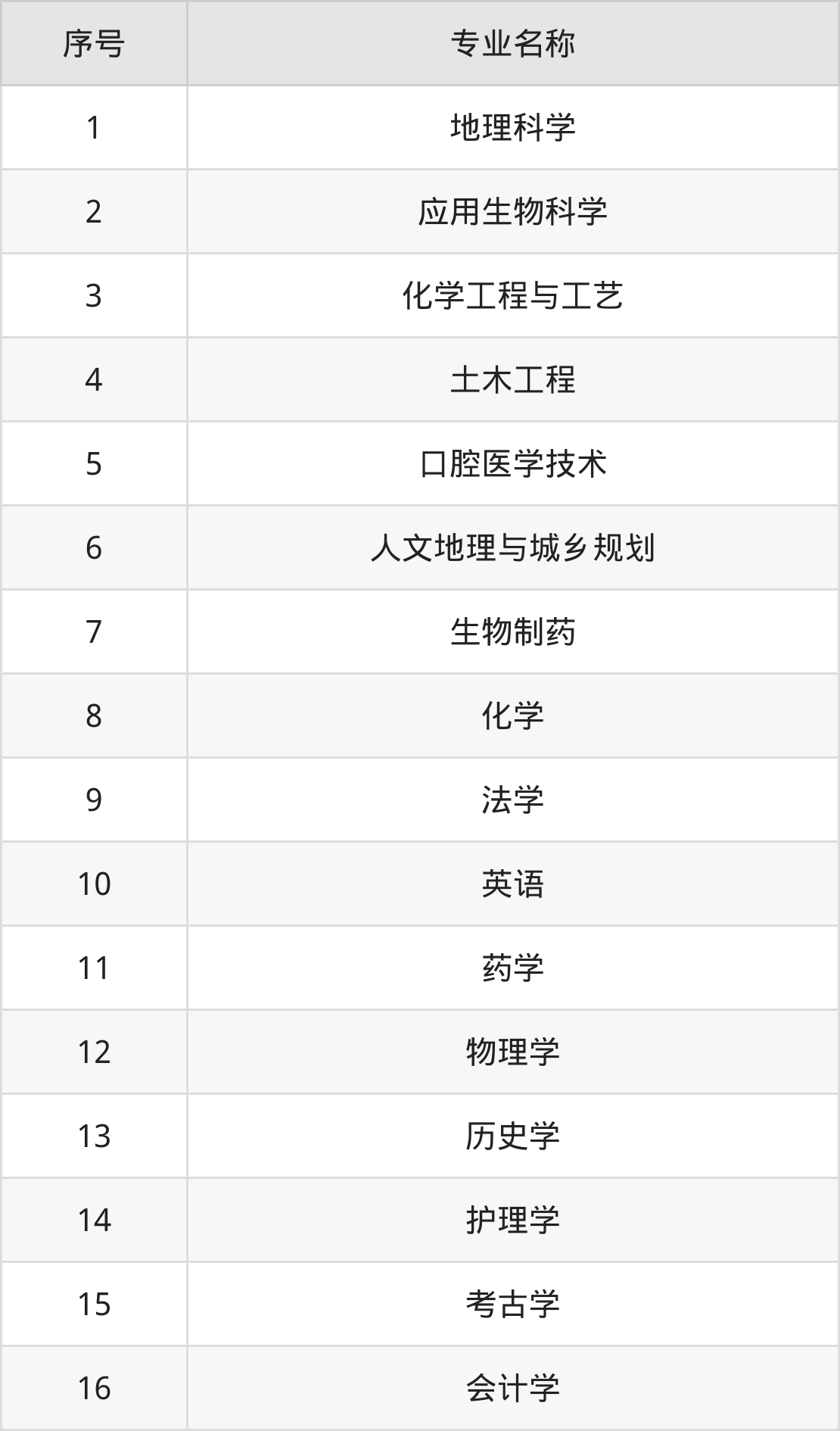 物理类(理科)本科招生专业:应用生物科学、化学工程与工艺、土木工程、口腔医学技术、人文地理与城乡规划、生物制药、药学、法学、化学、物理学等。