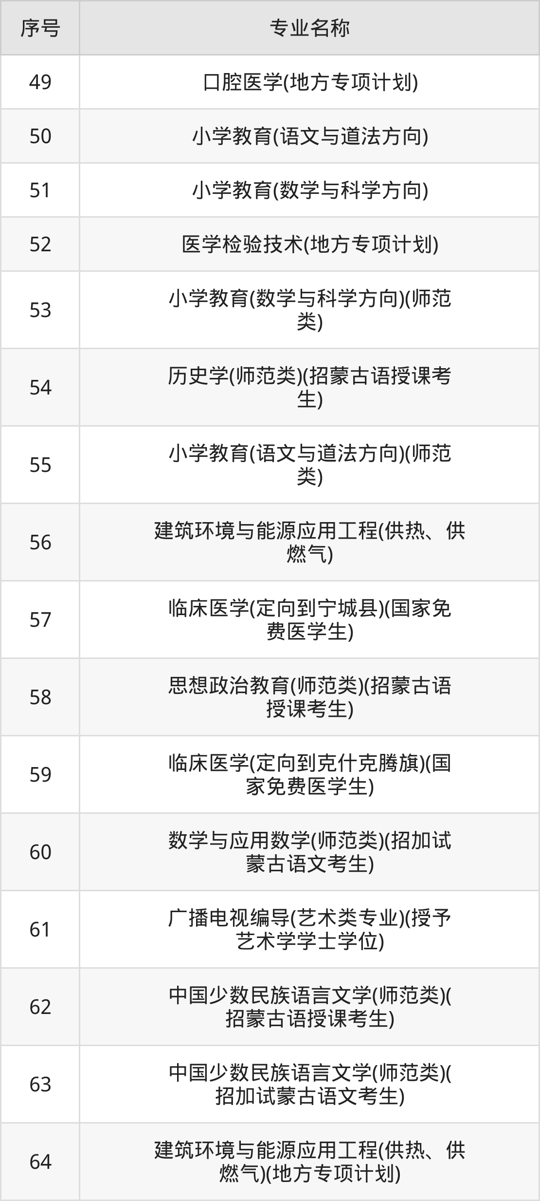 目前,赤峰学院公布了2024年本科招生专业,共64个;2024年专科招生专业为1个。