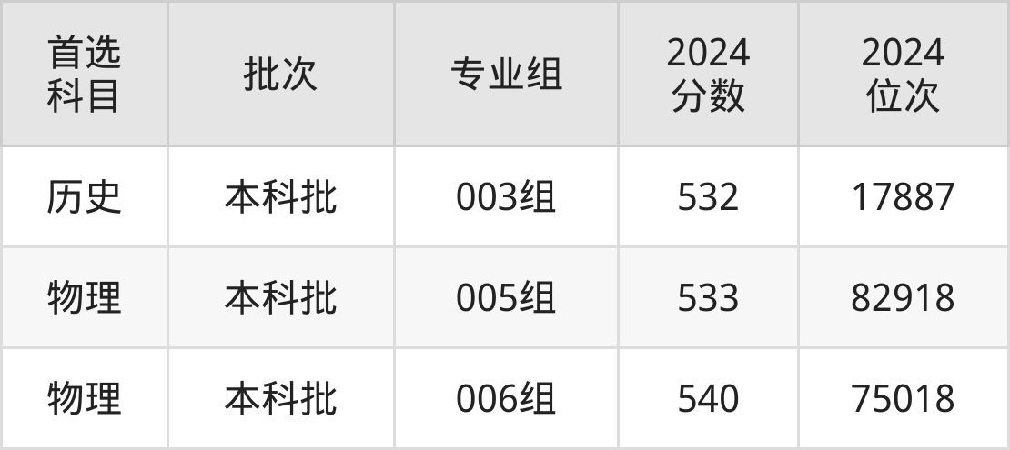 从2024年安徽工业大学在安徽省内的录取分数线来看,本科批录取分数线都在530分以上,录取分数线最高的是006组,2024年最低分为540分;录取分数线最低的是003组,2024年最低分为532分。