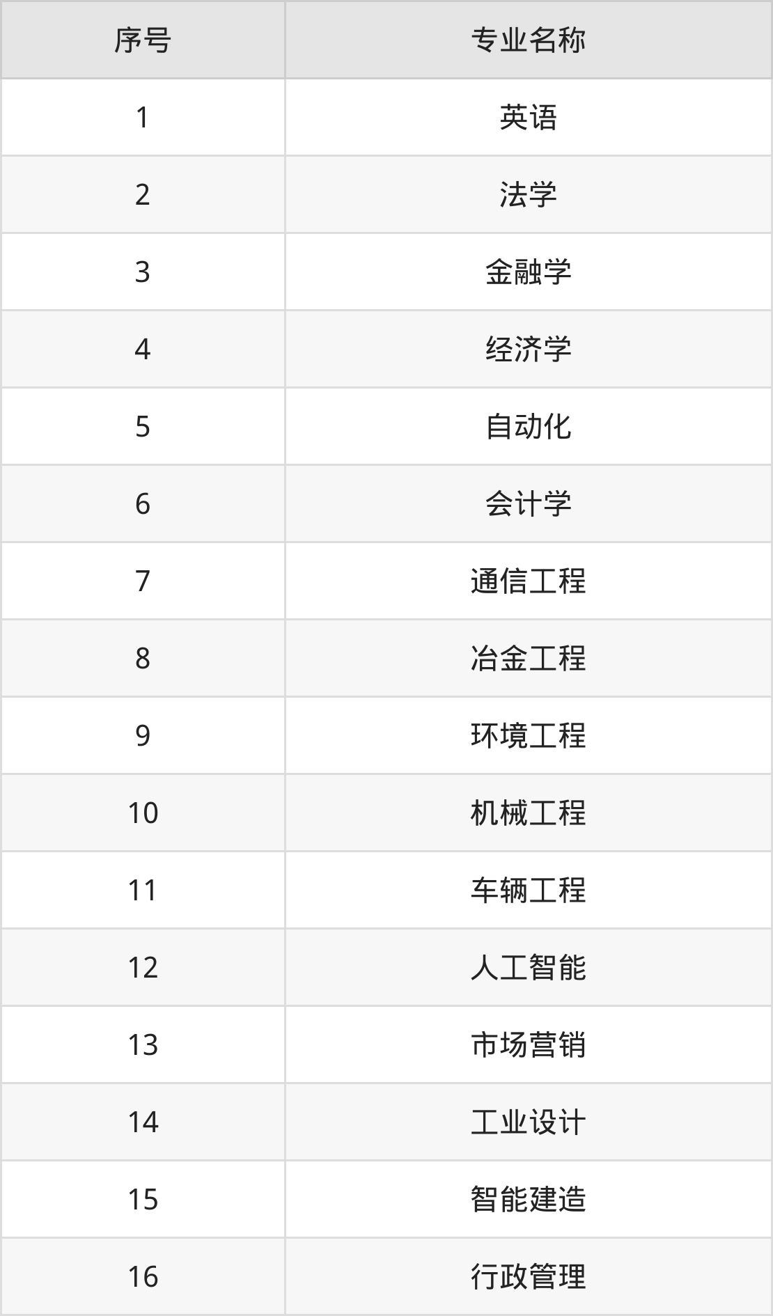 物理类(理科)本科招生专业:英语、法学、自动化、经济学、金融学、会计学、软件工程、车辆工程、工业工程、通信工程等。