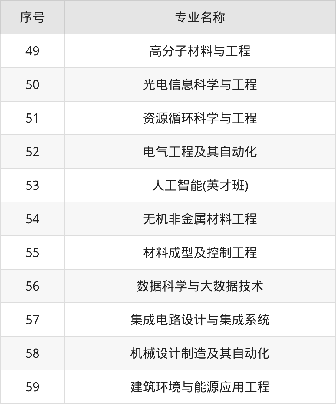 目前,安徽工业大学公布了2024年本科招生专业,共59个。