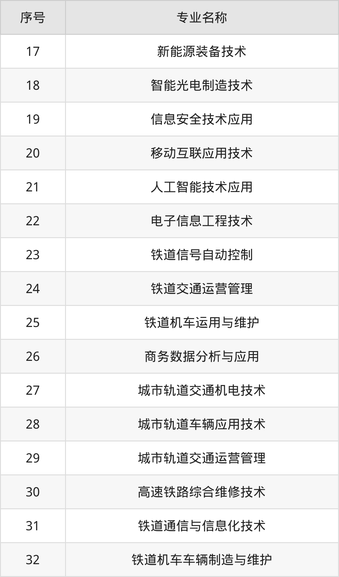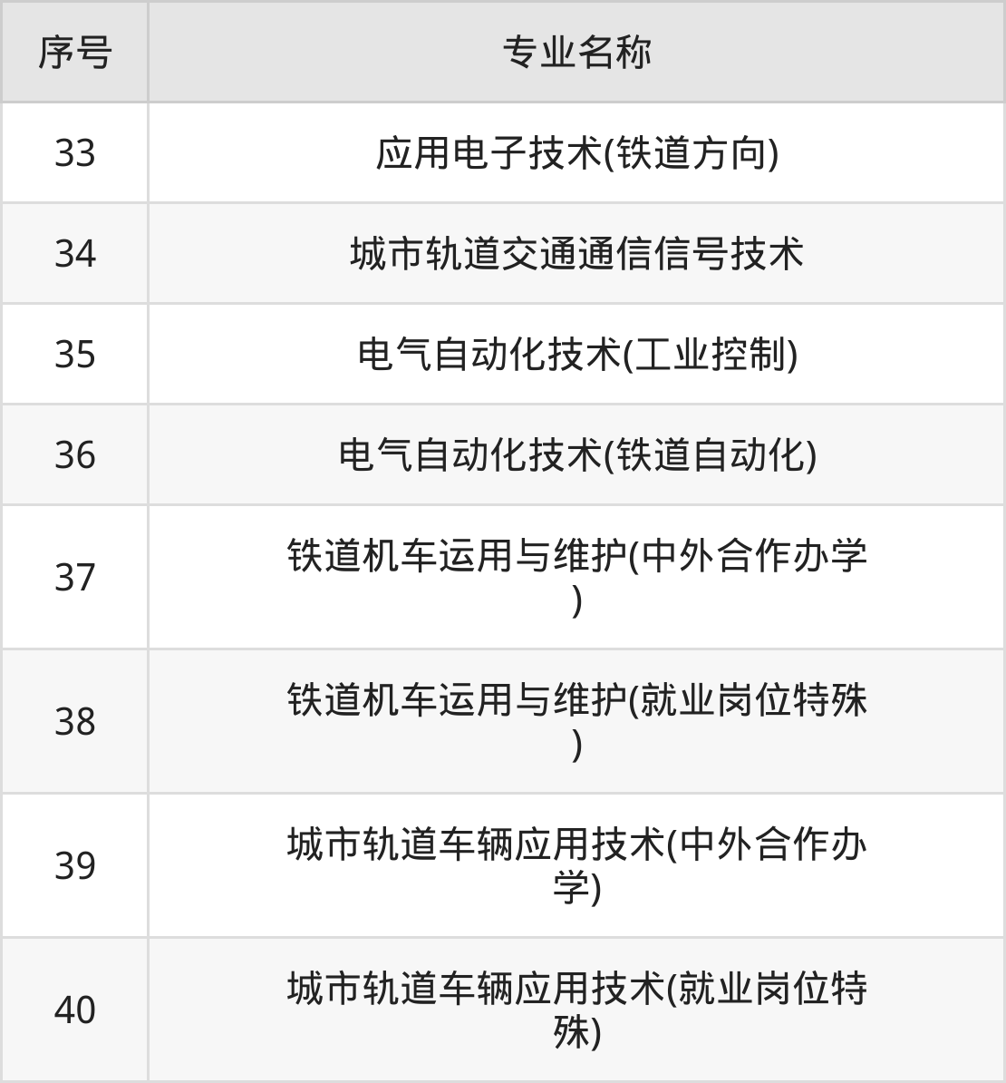 目前,湖南铁道职业技术学院公布了2024年专科招生专业,共40个。