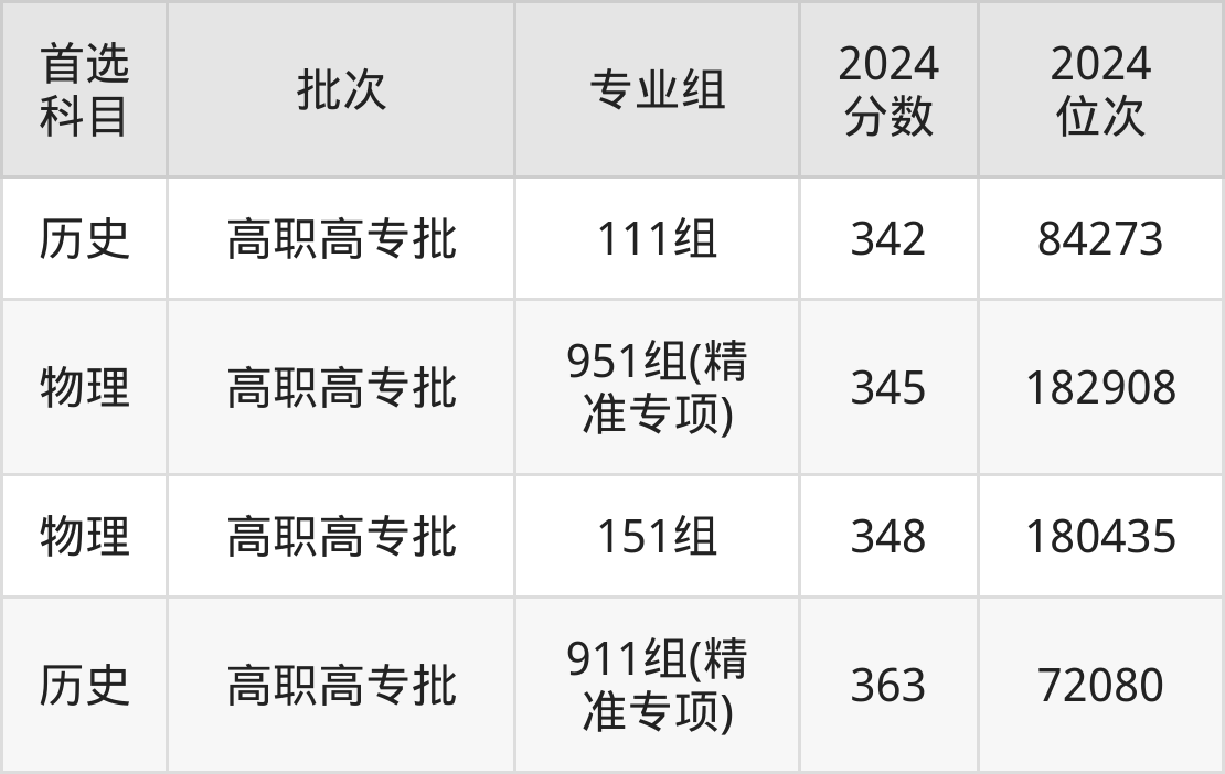 2024年广西工商职业技术学院在广西壮族自治区内专科批的录取分数线都在340分以上,在历史类的录取分数线在342分-363分之间;物理类的录取分数线在345分-348分之间。